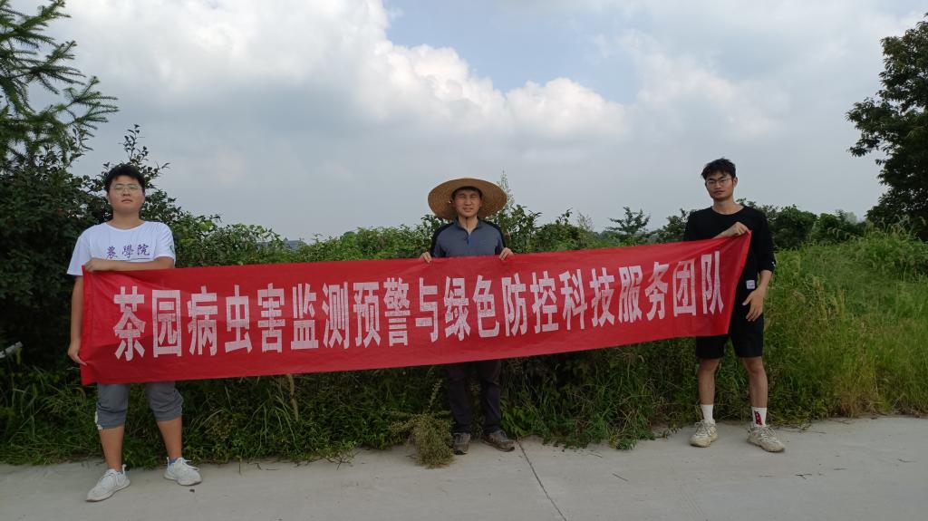 2023年8月14日,茶园病虫害监测预警与绿色防控科技服务团队成员、科技特派员耿书宝博士带领张文烜、宋君川、姜云龙3名学生前往罗山县亿峰生态林业开发有限公司、信阳申林茶叶有限开发公司开展科技服务工作,开展农学院本科生科研训练项目-信阳市茶园主要害虫发生情况调查。