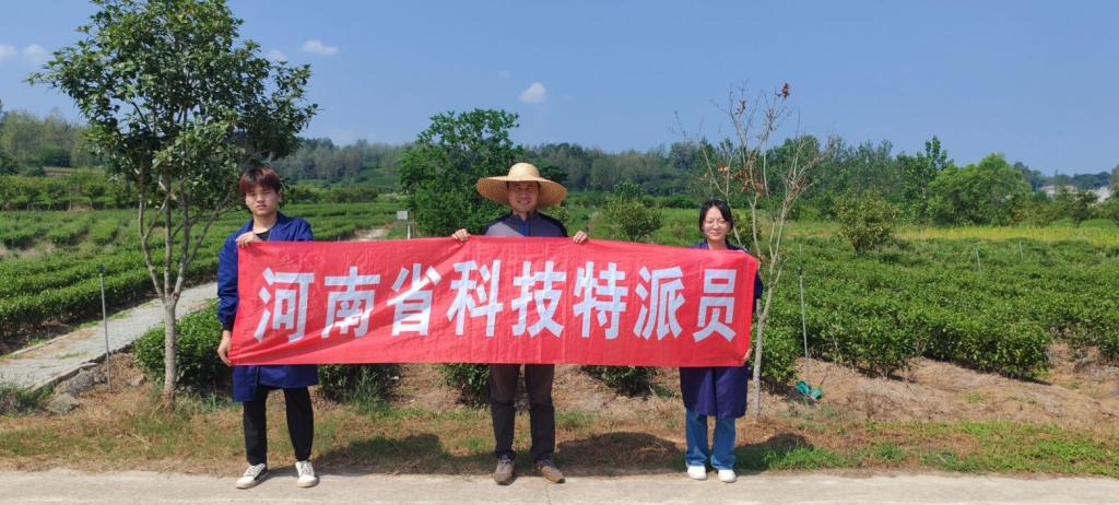 2024年8月25日,我院河南省科技特派员、茶园病虫害监测预警与绿色防控科技服务团队成员耿书宝博士带领其学生王菁、杨鹏磊、董培柯驱车前往信阳市罗山县和光山县茶园开展科技服务。