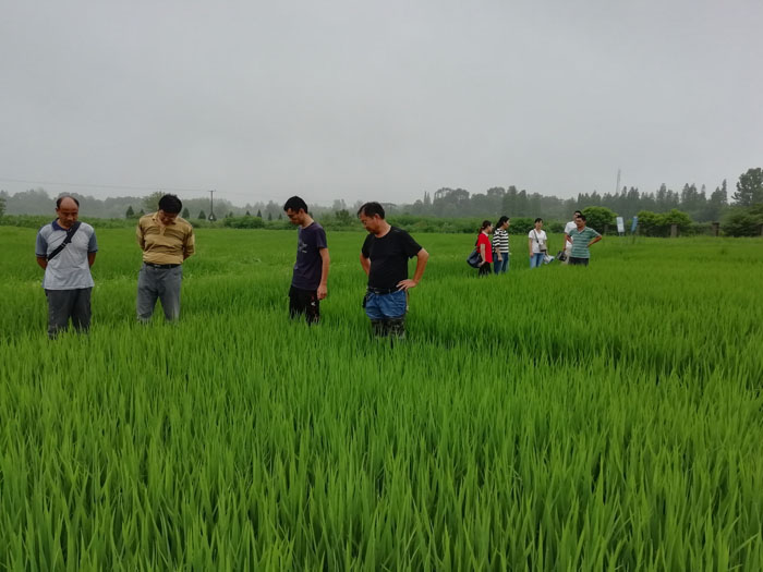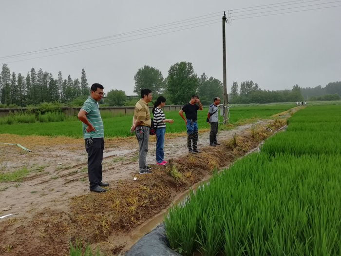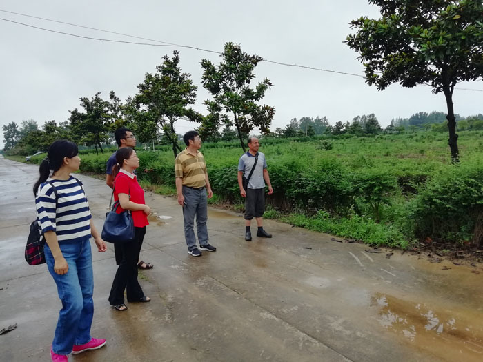 为进一步落实邢勇校长调研农学院时提出的要求,突出培养应用型人才的办学定位,主动搭建校外实习实训基地,促进实践教学的改革与发展,拓宽实践基地的建设渠道,2020年7月17日下午,我院院长尹健教授带领实验教学中心主任肖荣英副教授、植保教研室主任王国君副教授和副主任乔利副教授、科研秘书耿书宝博士一行5人到信阳市农科院五里店试验基地和陆庙试验基地考察与交流。信阳市农科院植保所所长卢兆成研究员、资环所所长潘兹亮研究员、张丽霞副研究员、郭晓彦副研究员、聂良鹏和史鹏飞助理研究员介绍了两处试验基地的在研项目和建设情况。