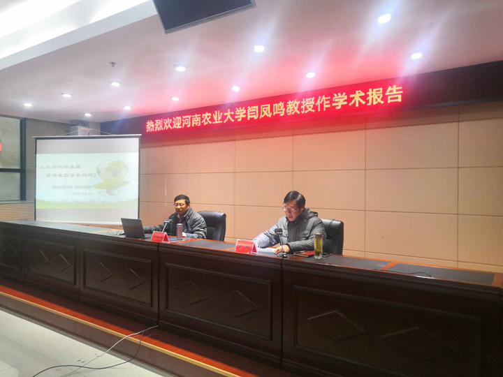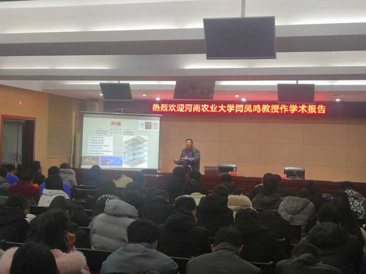 2019年12月23日,河南农业大学闫凤鸣教授应邀为我院植物保护专业学生作学术报告。植物保护专业本科生和我院部分专业教师参加了本次会议,报告会由农学院院长尹健教授主持。