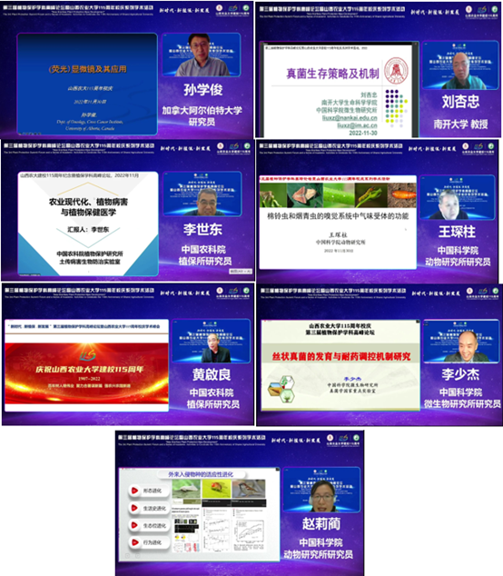 2022年11月30日,农学院尹健院长带领陈利军副院长、植保教研室老师王国君、王春生、尤伟晨、刘红敏、金银利、耿书宝、张方梅、李永丽、智亚楠线上参加“新时代•新植保•新发展”第三届植物保护学科高峰论坛暨山西农业大学115周年校庆系列学术活动。本次论坛主由山西农业大学主办、山西农业大学植物保护学院承办,以线上线下相结合的方式进行。本次论坛有来自全国30余个省、直辖市、自治区的线上参会人员共计1782人,总点击量6522次。