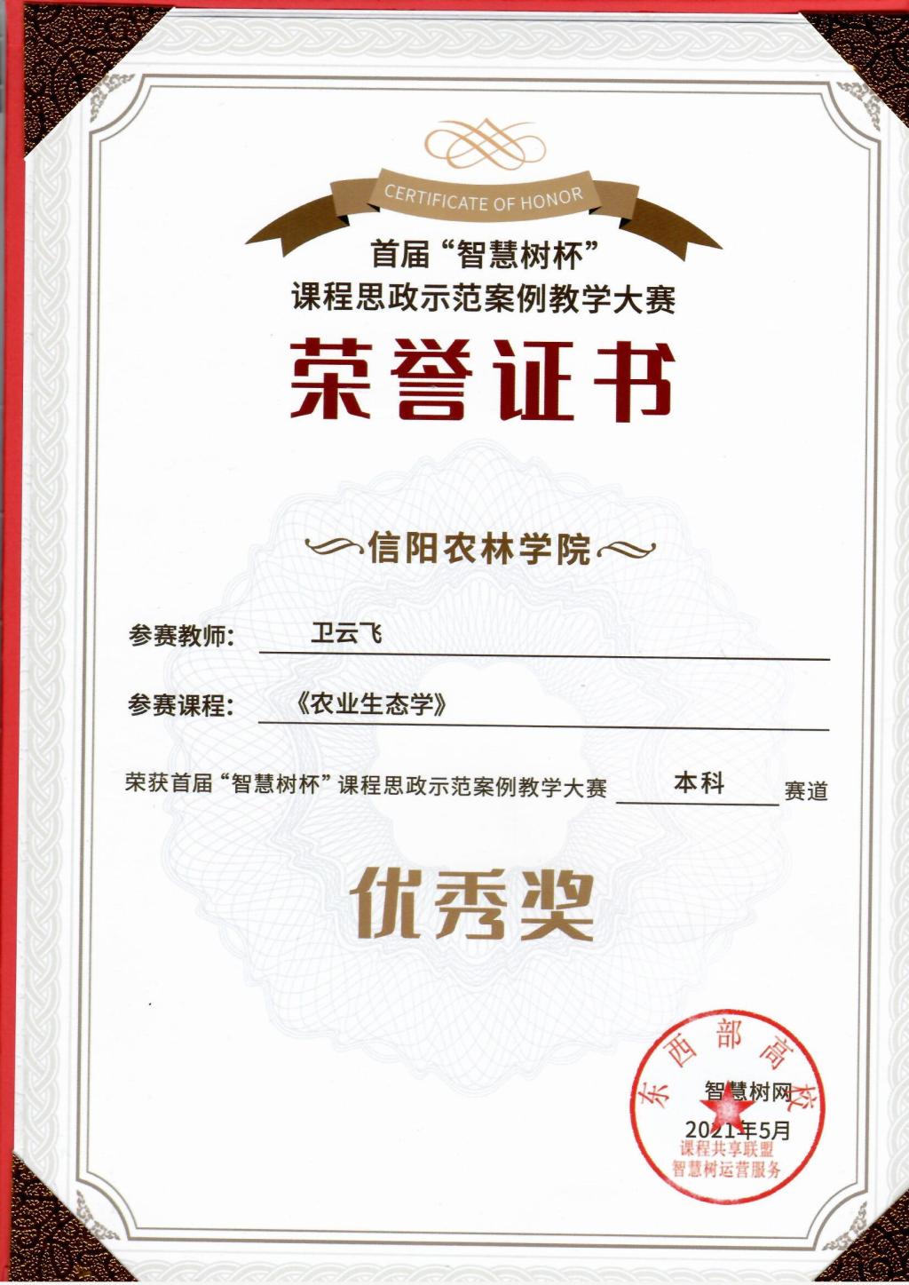 我院卫云飞、肖荣英、李跃伟、潘鹏亮4名教师积极参赛。卫云飞参赛案例为《农业生态系统的调控原则》,肖荣英参赛案例为《专业基础课程融入思政工作的教学设计理念与方法--以土壤肥料学课程绪论为例》,李跃伟参赛案例为《专业课程融入思政工作的教学设计理念与方法--以田间试验与统计分析课程绪论为例》,潘鹏亮参赛案例为《害虫防治原理和方法》,经过初赛,4位老师所申报案例全部入围,进入复赛阶段。在紧张激烈的复赛评选中,卫云飞参赛案例脱颖而出,最终喜获首届智慧树杯课程思政示范案例教学大赛本科赛道优秀奖。