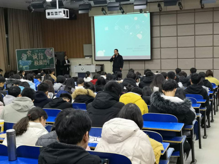 2019年11月29日,我院在E101举办“诚信校园行”短剧比赛活动,学工组刘书含、武浩老师及各部部长担任评委,薛博洋、程怡新同学担任主持人,19级同学参与。