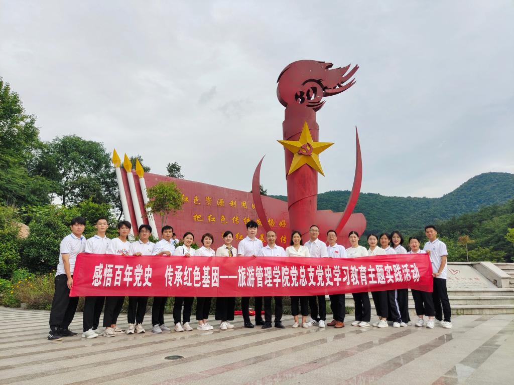 为深入学习贯彻习近平新时代中国特色社会主义思想,进一步加强我院师生党史学习教育,引导全院师生学史明理、学史增信、学史崇德、学史力行,传承红色基因,赓续红色血脉,7月10日上午,旅游管理学院党总支前往四望山开展了党史学习教育主题实践活动。院党总支书记陈建国、副书记杜丽、科级干部等师生党员代表共计20余人参加了此次活动。
