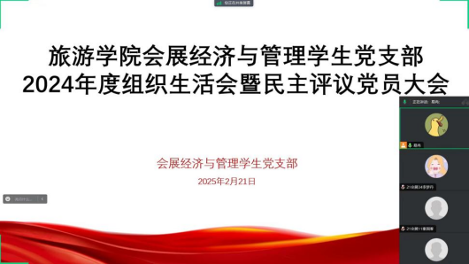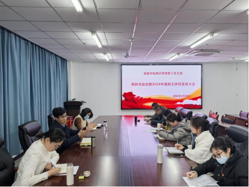 为深入学习贯彻习近平新时代中国特色社会主义思想,进一步加强党支部建设,提升党员的凝聚力和战斗力,2025年2月19日-21日,旅游学院党委下属七个党支部分别在双创中心310会议室召开2024年度组织生活会暨民主评议党员大会。会议由各支部书记主持,各党支部全体党员参加会议,学院领导班子成员以普通党员身份参加了所在党支部的组织生活会。校党委委员、副校长刘开华参加酒店管理教工党支部的组织生活会并进行指导,旅游学院党委书记朱长明参加航空服务艺术与管理教工党支部、会展经济与管理教工党支部并进行指导。