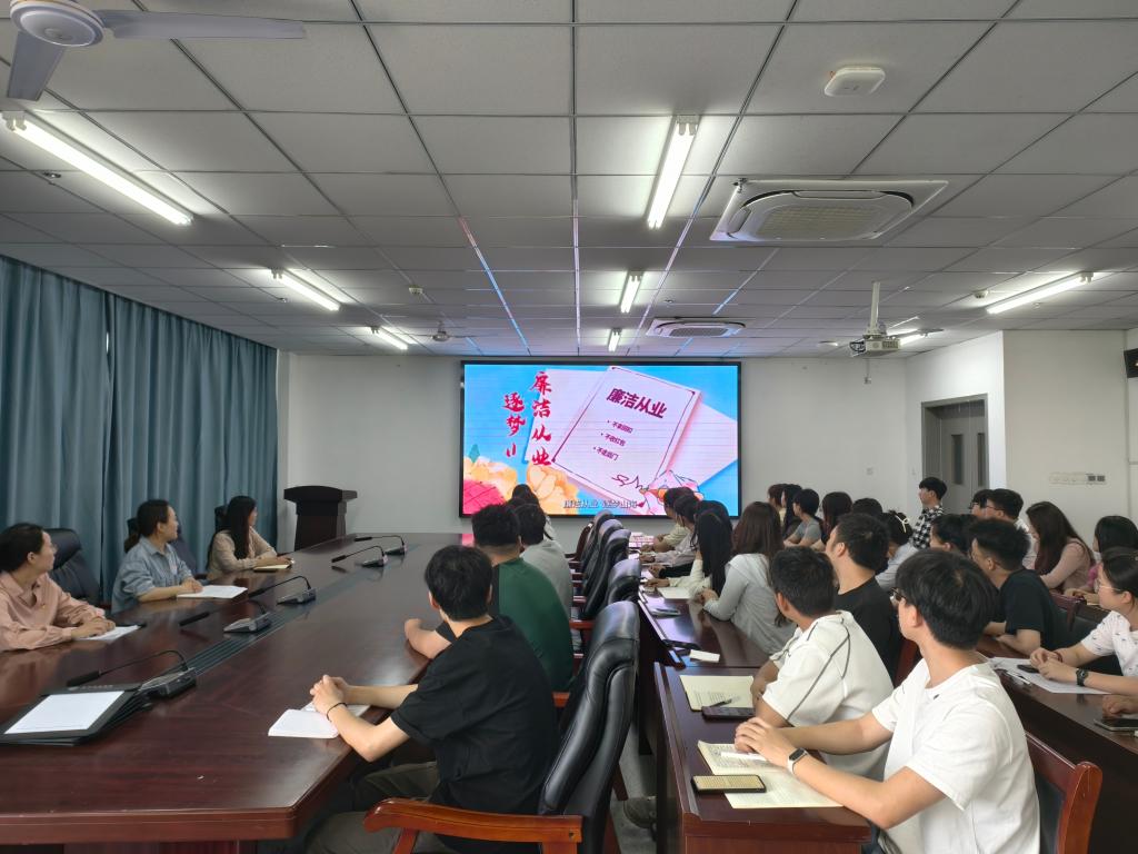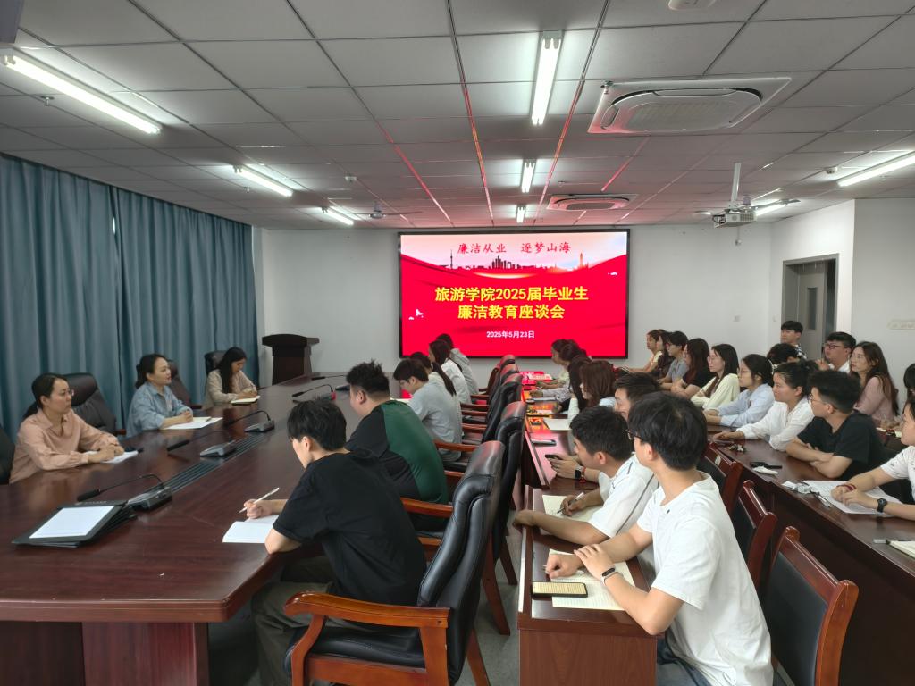 为切实加强毕业生廉洁从业意识,帮助他们扣好职业生涯的“第一粒扣子”,旅游学院于5月23日召开了2025届毕业生廉洁教育座谈会。学院党委副书记、纪委书记池水婧主持会议,专职组织员张音音、团委副书记徐俊杰、2025届毕业生学生干部和党员参加本次座谈会。