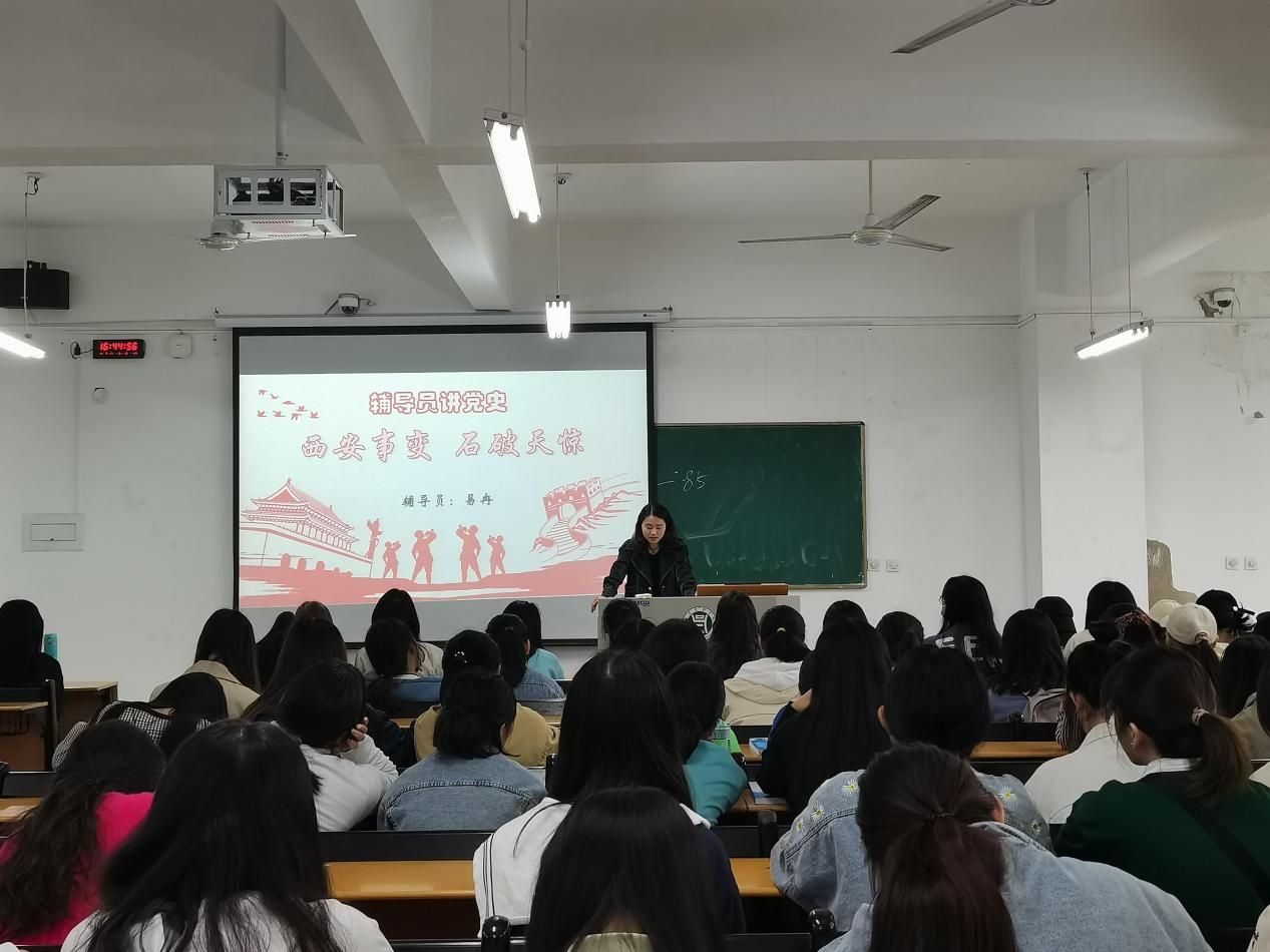 4月28日,我院辅导员易冉老师在二教103为自己所带班级开展了以“西安事变 石破天惊”为主题的讲党史活动。易冉老师给大家讲述了西安事变的历史过程和意义。她指出虽然西安事变的硝烟已经散去,这段历史也离我们越来越远,但是西安事变的历史意义重大,我们不能忘记那些为了和平而奉献甚至牺牲的历史英雄,作为新时代的一名大学生,我们要努力学习,踏实工作,为中华民族的伟大复兴贡献我们应有的力量。