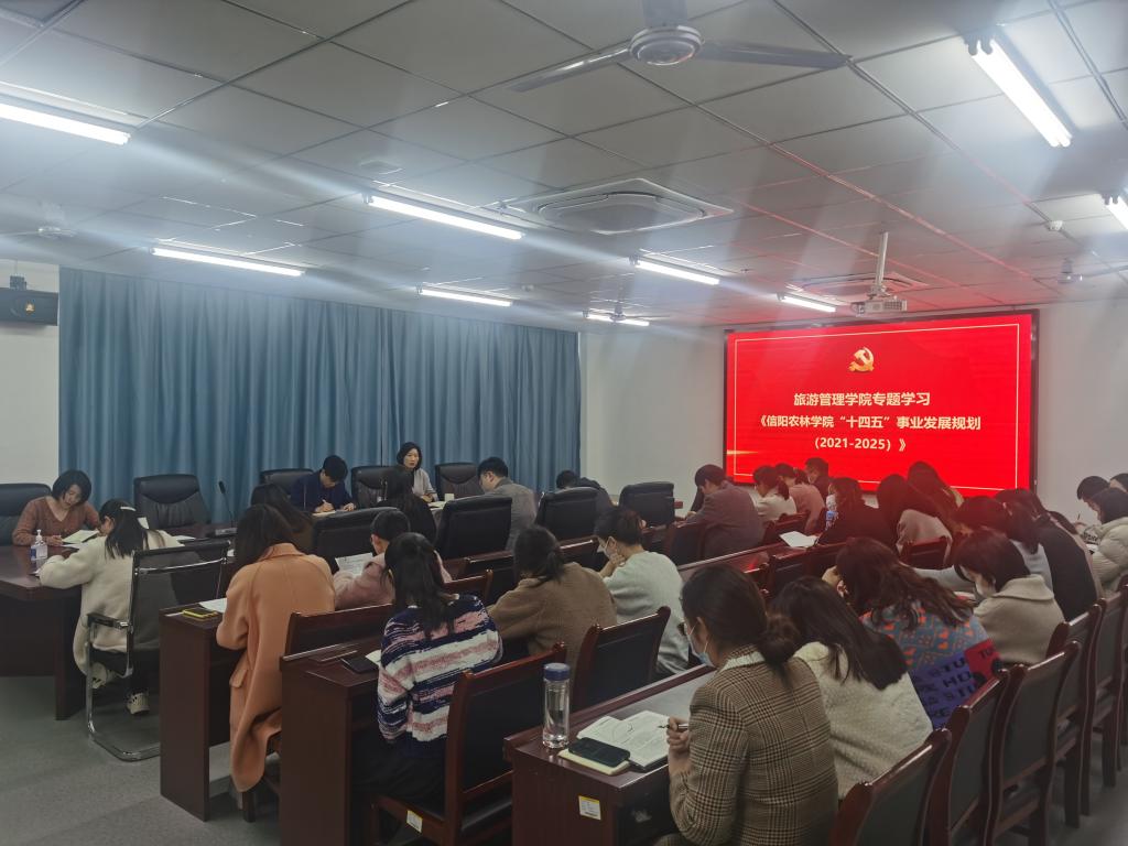 3月8日下午,旅游管理学院专题学习《beat365在线平台官网“十四五”事业发展规划(2021—2025)》。会议由院长刘开华主持。