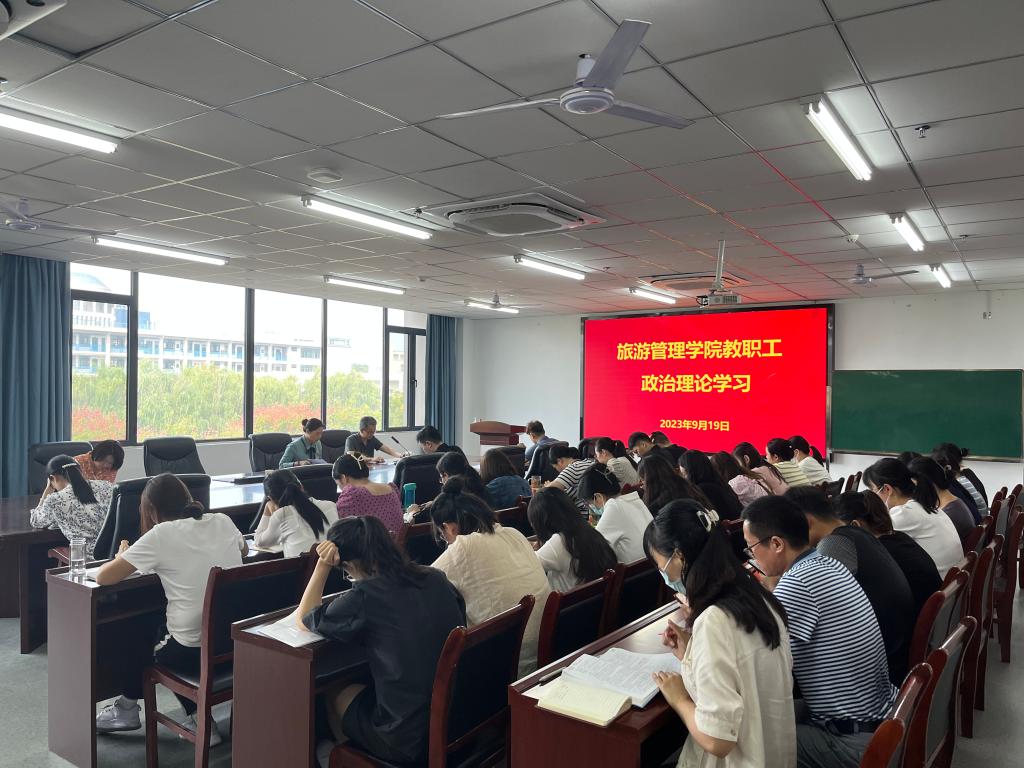 9月19日下午,旅游管理学院在双创中心310会议室召开教职工政治理论学习会。学院领导班子成员、全体教职工参加学习,学院党总支副书记杜丽主持学习会。