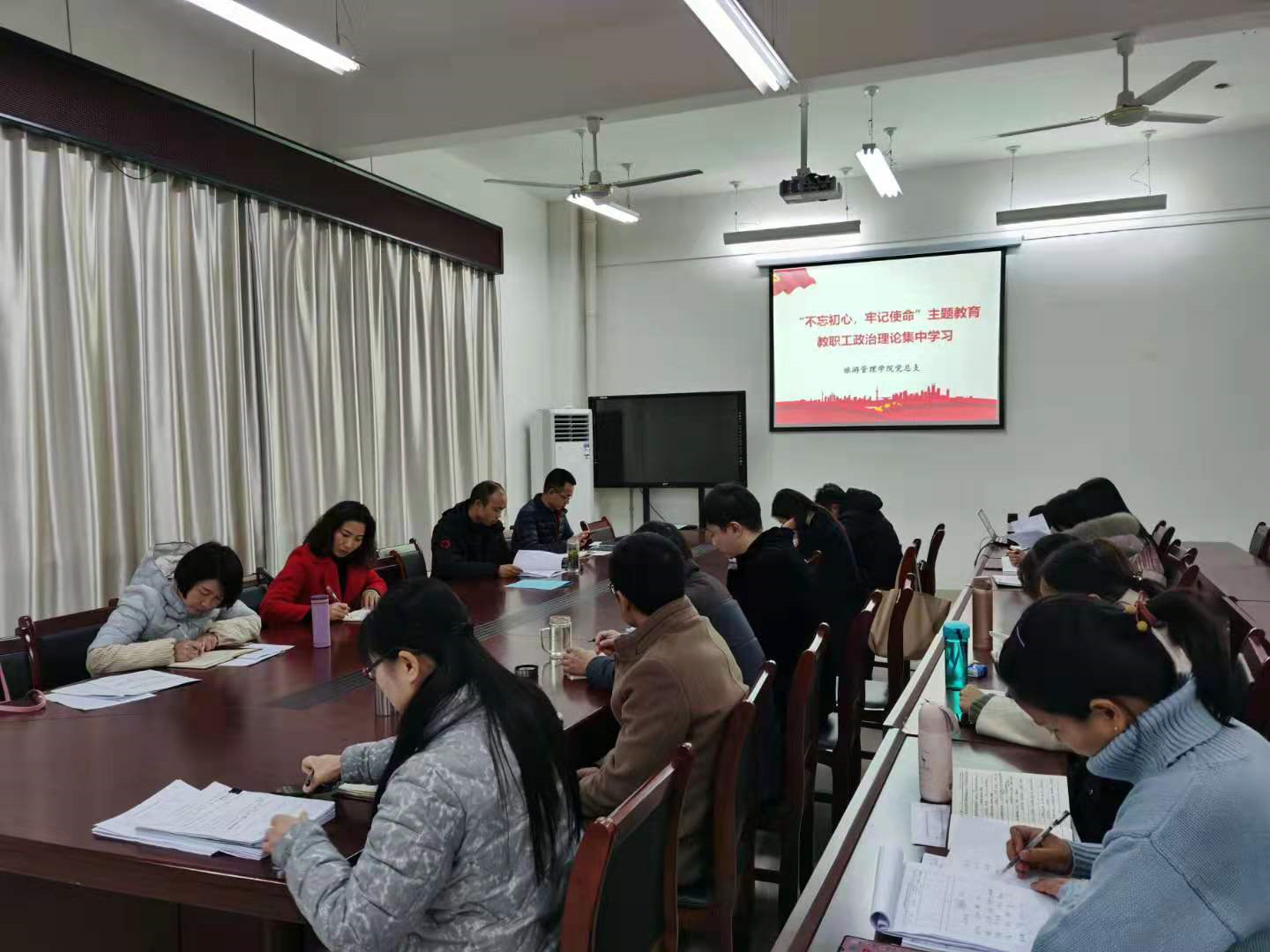 11月26日下午,旅游管理专业教研室党支部在1C502召开学习会,组织本支部全体党员教师集中学习《习近平关于“不忘初心、牢记使命”论述摘编》。学习会由支部书记主持。