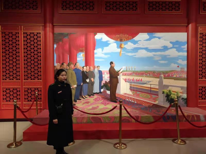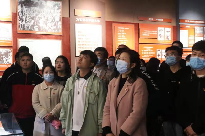 首先,杜丽向同学们介绍了鄂豫皖革命根据地的建立历史,及其在中国革命历史上的重要贡献,并号召同学们牢记历史,缅怀先烈,不忘初心,弘扬大别山革命精神。接着,师生们向革命烈士纪念碑敬献鲜花,默哀悼念,寄托浓浓哀思。悼念活动结束后,师生们在革命纪念馆入口处面对党旗重温入党誓词,以铮铮誓言彰显永恒初心、庄严承诺。最后,在讲解员的带领下,师生们怀着无比崇敬的心情瞻仰革命烈士纪念堂,聆听了革命先烈的动人故事,更全面深刻地了解了烈火烽烟中的鄂豫皖革命根据地。