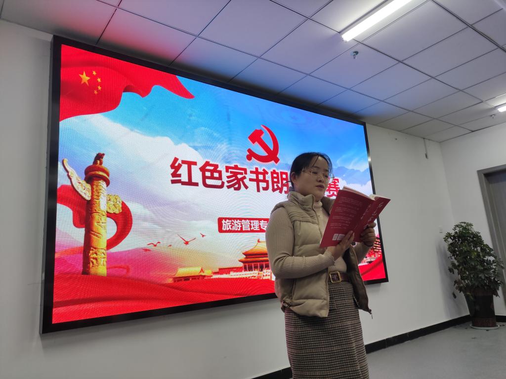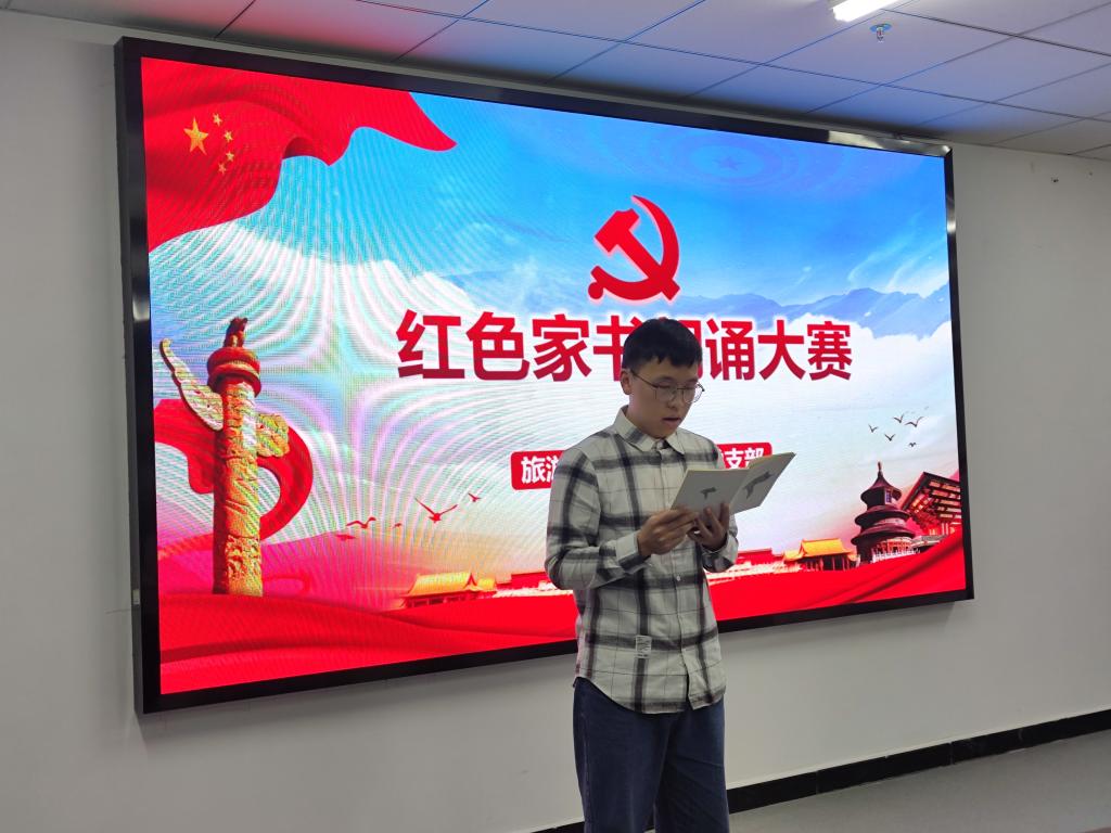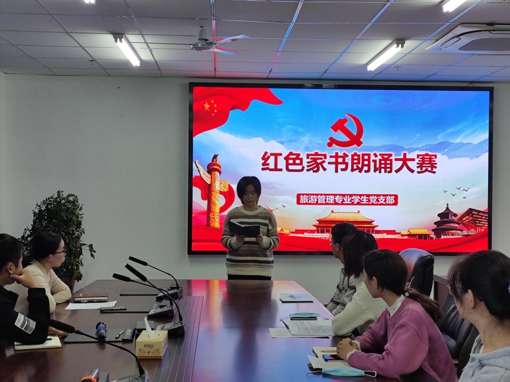为献礼中国共产党建党100周年,深入开展“四史”学习教育,引导党员同志从“红色家书”中重温革命历史,缅怀革命先烈,传承红色基因,牢记时代使命,旅游管理专业学生党支部于10月20日在双创中心310开展了红色家书朗诵比赛。支部党员及入党积极分子代表参加了此次活动。