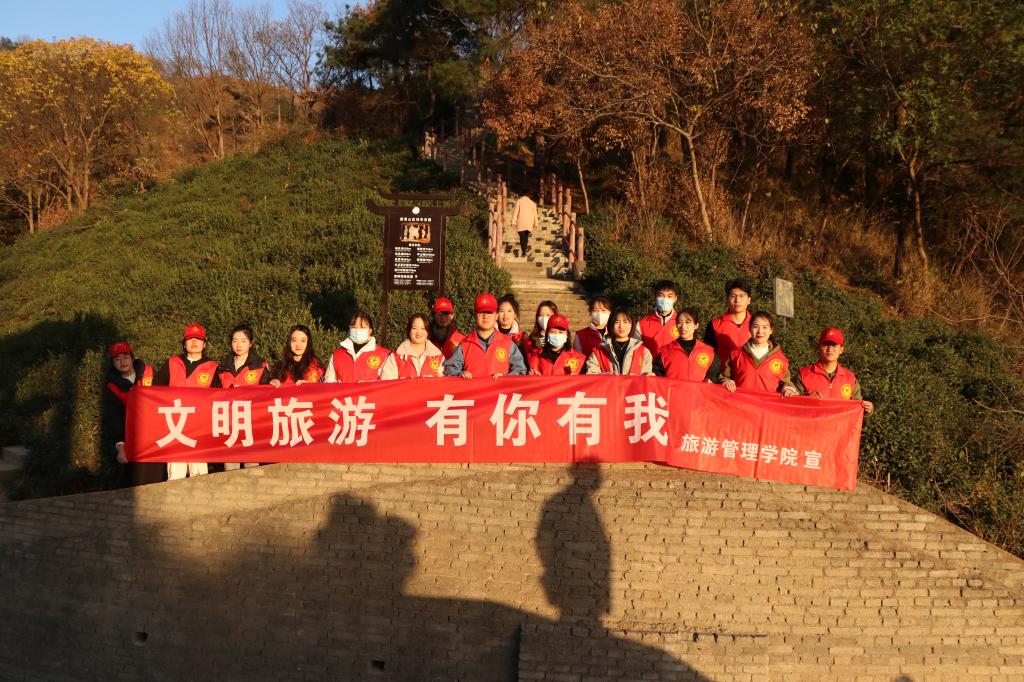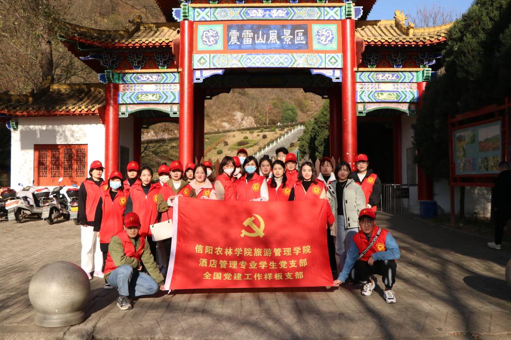 为提升我院学子的文明旅游素养,加强思想道德教育。12月11日,旅游管理学院酒店管理专业学生党支部前往信阳市震雷山风景区开展了“文明旅游党员先行”志愿服务主题党日活动,除实习学生党员外的其余全部师生党员参加了本次活动。