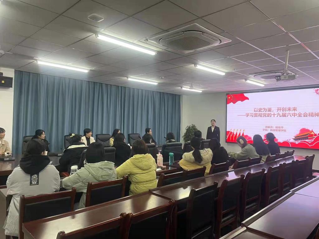 为深入学习贯彻十九届六中全会精神,扎实推进党史学习教育,11月26日晚,旅游管理学院酒店管理专业学生党支部在双创中心310会议室开展了“学习贯彻十九届六中全会精神”主题微党课比赛。比赛由支部委员王芳老师主持,支部在校学生党员和教师党员参加本次比赛。