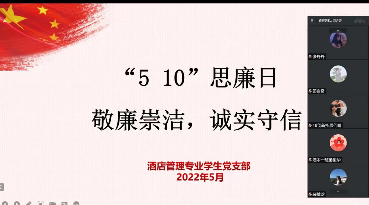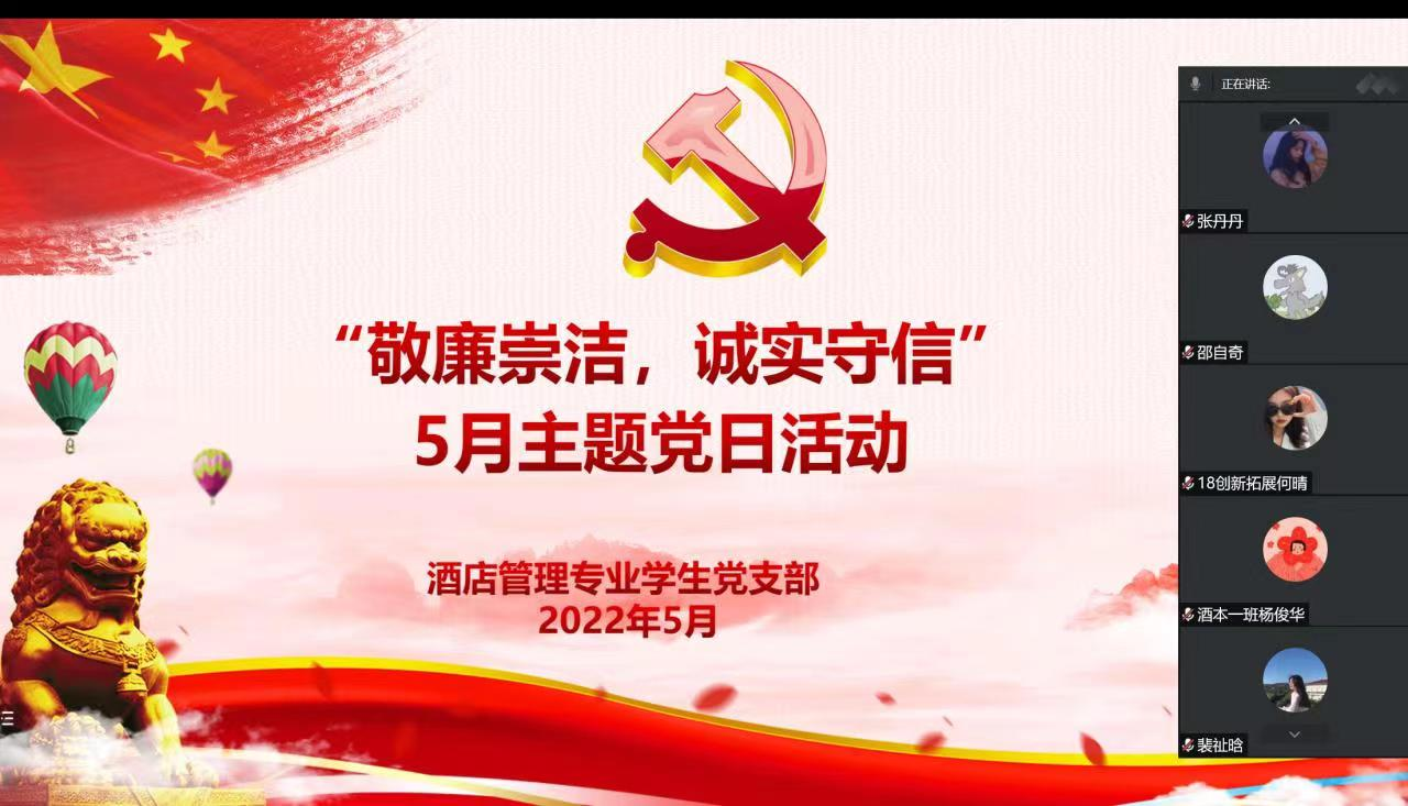 酒店管理专业学生党支部开展“敬廉崇洁,诚实守信”5月主题党日活动