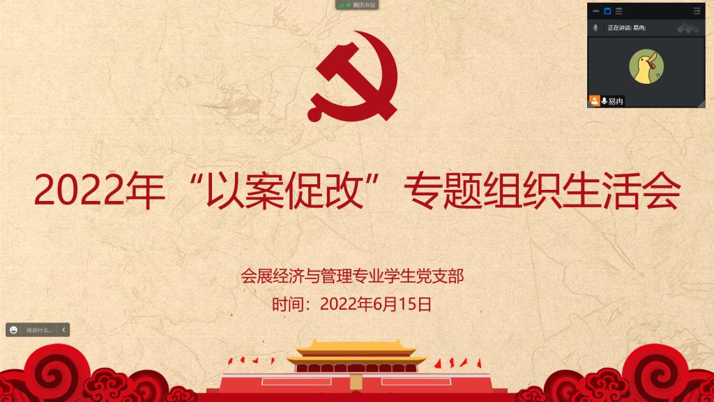 6月15日下午,会展经济与管理专业学生党支部在线上召开“以案促改”专题组织生活会,会议由支部书记易冉主持。