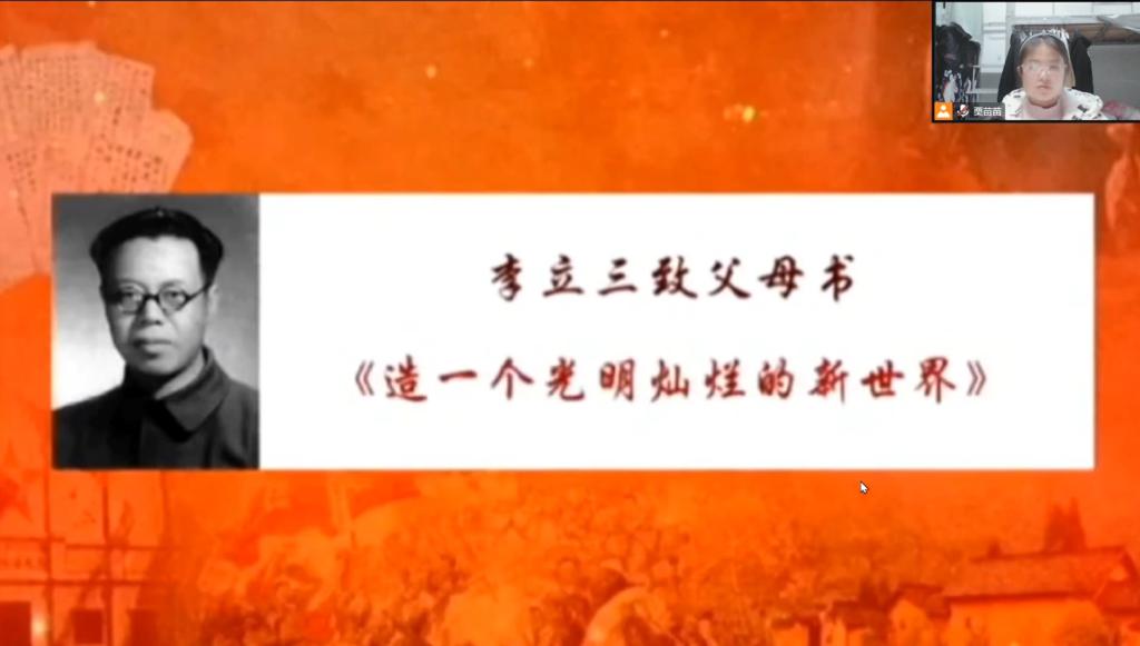 支部党员同志们以微视频的形式声情并茂地诵读了《夏明翰致母亲陈云凤》《赵一曼写给儿子的信》《李立三致父母书》《向警予致父母书》等红色家书。这些家书展现了不同时期中国共产党人及中国青年的精神风貌和无悔选择,这里既有烽火年代的铁骨柔情,也有建设时期的忠诚奉献,更有改革时代的豪情壮志。一封封感人肺腑的红色家书,一段段刻骨铭心的动人事迹,让每一位聆听者都能循着深情的诵读之音,走进那段硝烟弥漫的历史,打开岁月尘封的记忆,触摸真实的故事,感受信仰的力量。