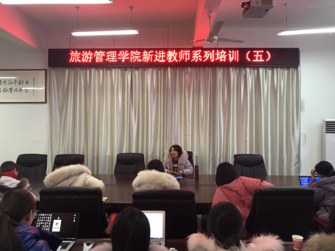先进的教育教学理念、基本的教育教学方法与技能,对于一名高校教师来说,是必须要具备和掌握的。为了增强我院的师资力量建设和促进教师自身的良好发展,根据本科教学工作合格评估要求和我院师资队伍建设规划,结合新教师实际情况,12月29日下午,旅游管理学院在科技楼1C502会议室组织召开了第五次新进教师系列培训活动,本次培训活动由旅游管理学院陈婷副院长主讲,学院近两年新进教师参加了培训活动。