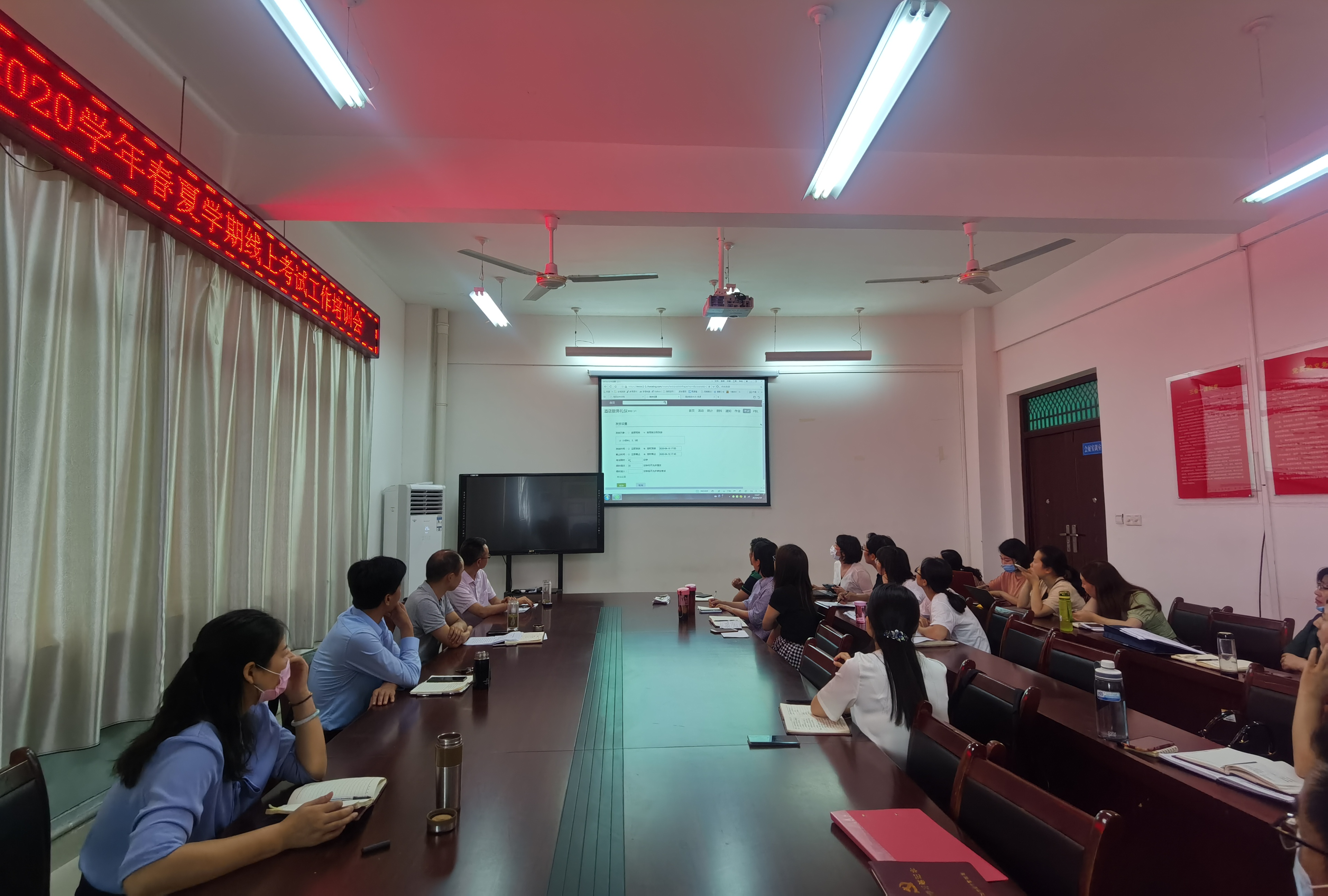 为确保2020年春夏学期期末线上考试顺利开展,加强考风学风建设,我院于6月18日下午在1C502会议室召开2020学年春夏学期线上考试工作培训会,院长刘开华、党总支书记陈建国及各教研室老师参加了此次培训会,会议由教学副院长陈婷主持。