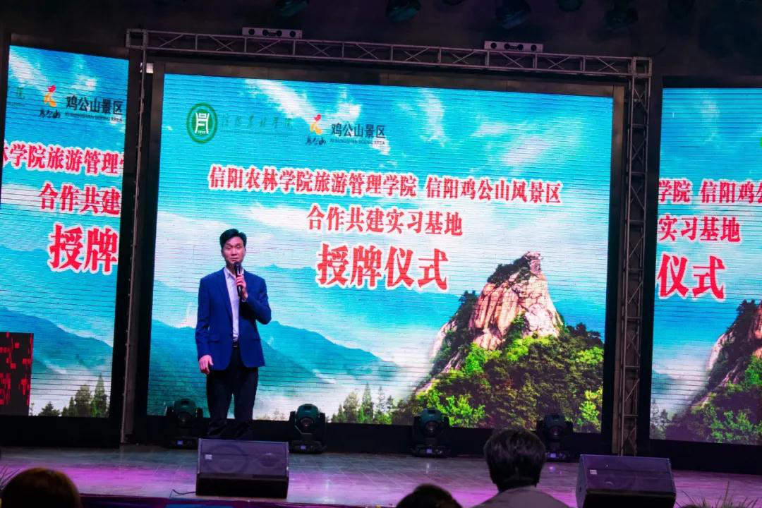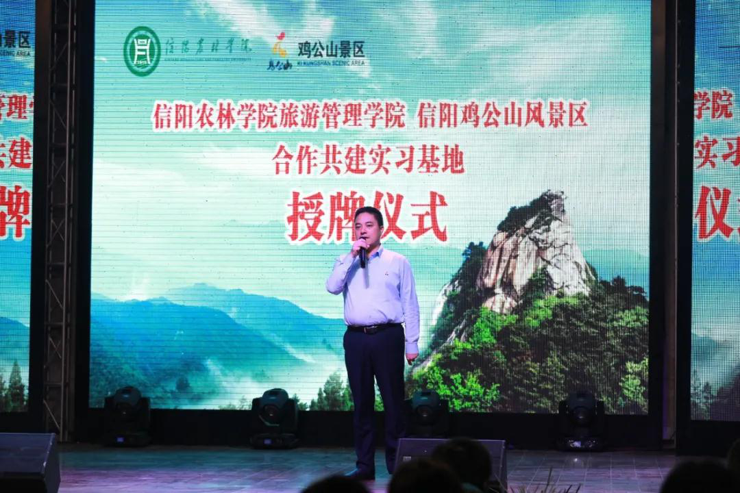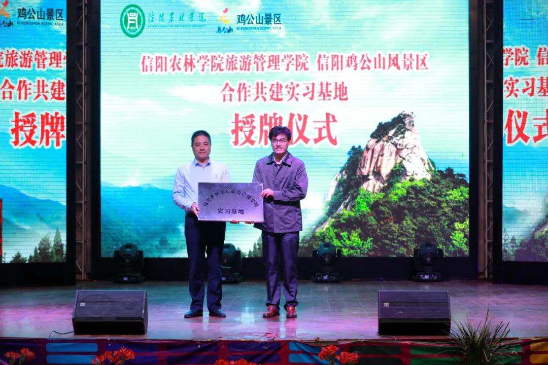最后,beat365在线平台官网副校长赵一鹏向鸡公山管理区旅游文化局局长、鸡公山风景区经营管理有限公司董事长蒋中亮授牌“beat365在线平台官网旅游管理学院实习基地”。