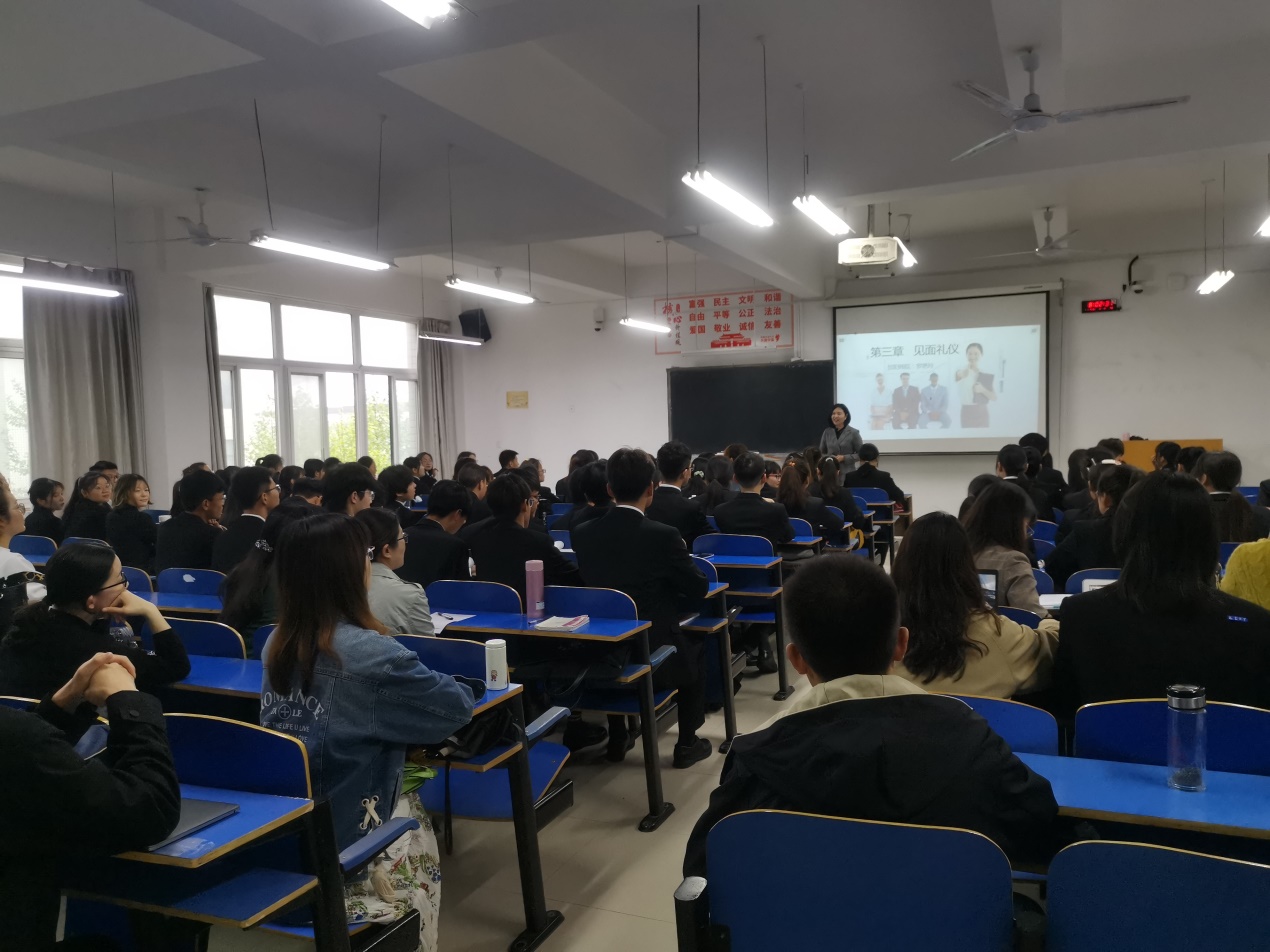2021年4月21日上午8:00,由信阳师范学院罗艳玲老师主讲的教学观摩课《旅游服务礼仪》在一号教学楼A203室顺利开展。旅游管理学院全体无课专任教师参加了本次示范课的观摩,观摩课由酒店管理教研室副主任李晓云主持。