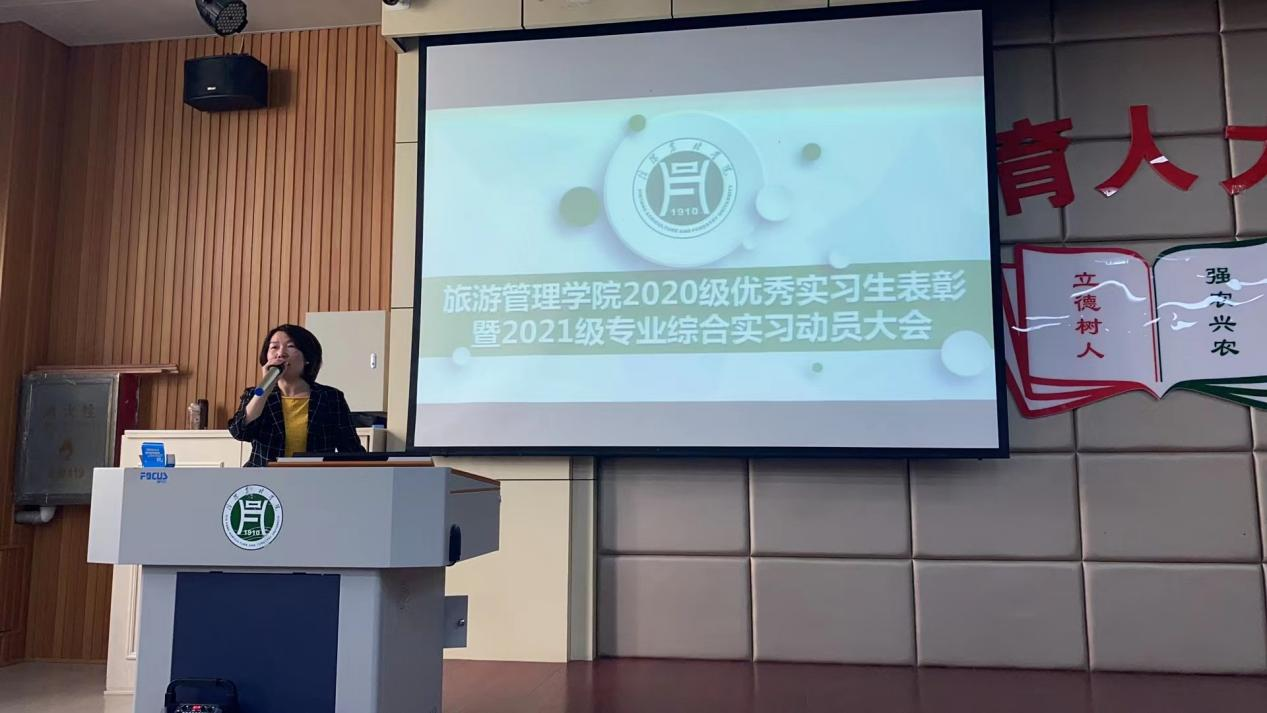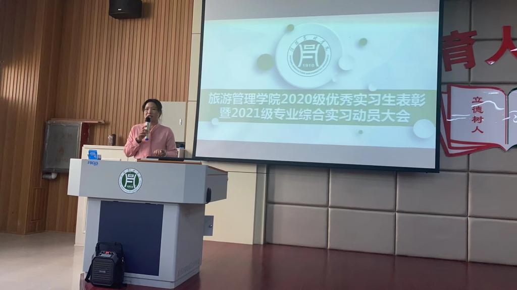 为了发挥优秀实习生的模范带头作用,提高实习工作的开展力度,旅游管理学院于2023年6月9日上午在1教E101召开了2020级优秀实习生表彰暨2021级专业综合实习动员大会。会议由旅游管理学院教学秘书张欢欢主持,旅游管理学院党总支副书记杜丽、副院长陈婷、副院长余兵、各教研室主任、2020级本科优秀实习生、2021级旅游管理、酒店管理专业本科生及辅导员老师参加了会议。