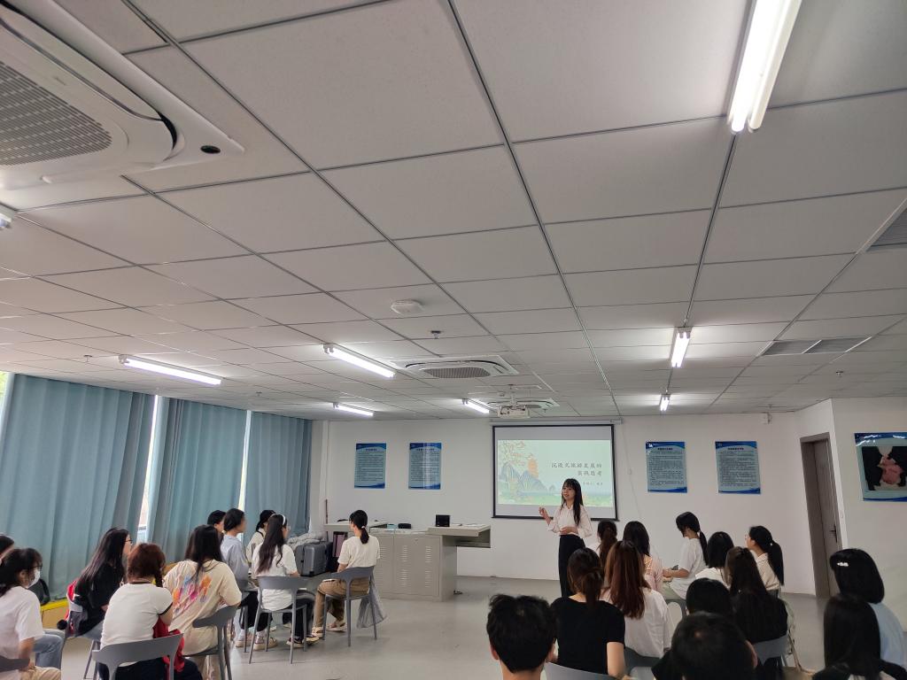 本次观摩课以《沉浸式旅游发展的实践思考》为主题,主讲教师陈芳结合当前旅游行业的热点问题和前沿趋势,通过案例分析、小组讨论等多种教学手段,深入剖析了沉浸式旅游的发展趋势及其对旅游行业的深远影响,引导学生深入思考和探讨旅游发展的新模式、新路径,激发了学生的学习主动性和积极性。在课堂教学中,陈芳还注重培养学生的批判性思维和创新能力,鼓励学生提出自己的观点和见解,营造了一个开放、包容、互动的课堂氛围。