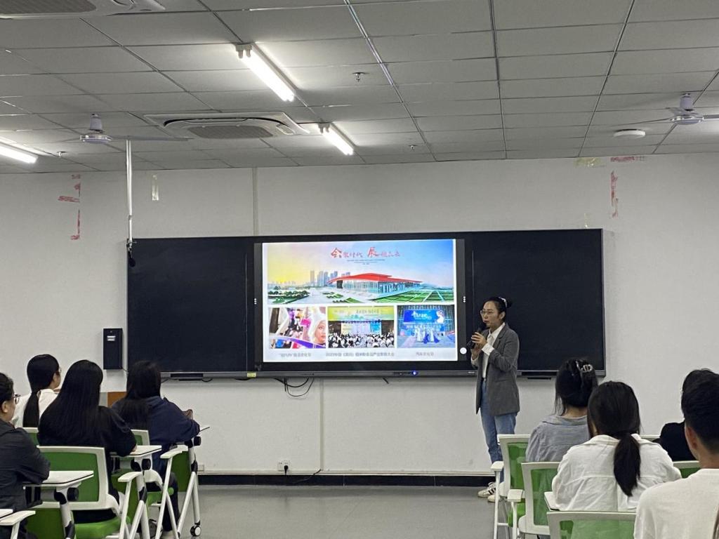 顾菲主要从会展经济与管理专业情况、课程开发与设置、职业生涯规划、学历晋升与大学生活等几个方面为新生全面剖析专业,为新生的大学学习做好心理准备,引导新生进入专业学习。同时鼓励学生今后积极参加各类会展技能竞赛,以赛促学,切实提升能力和水平,充分利用会展的平台作用推动产业发展。