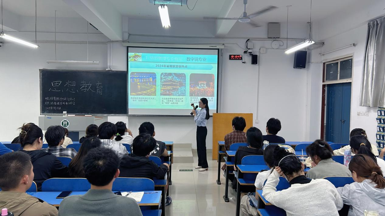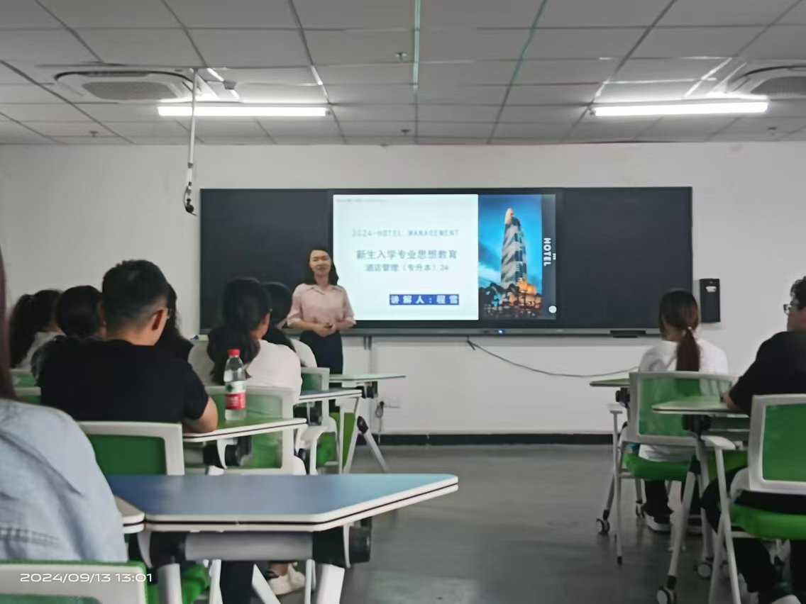 为使学生进一步了解本专业的人才培养模式、课程设置、毕业要求及行业发展趋势,旅游学院于9月13日对2024级专升本学生进行了专业思想教育。旅游管理、酒店管理、会展经济与管理三个专业的教研室主任分别为2024级专升本新生做了详细的专业介绍,并与同学们进行了精彩互动。
