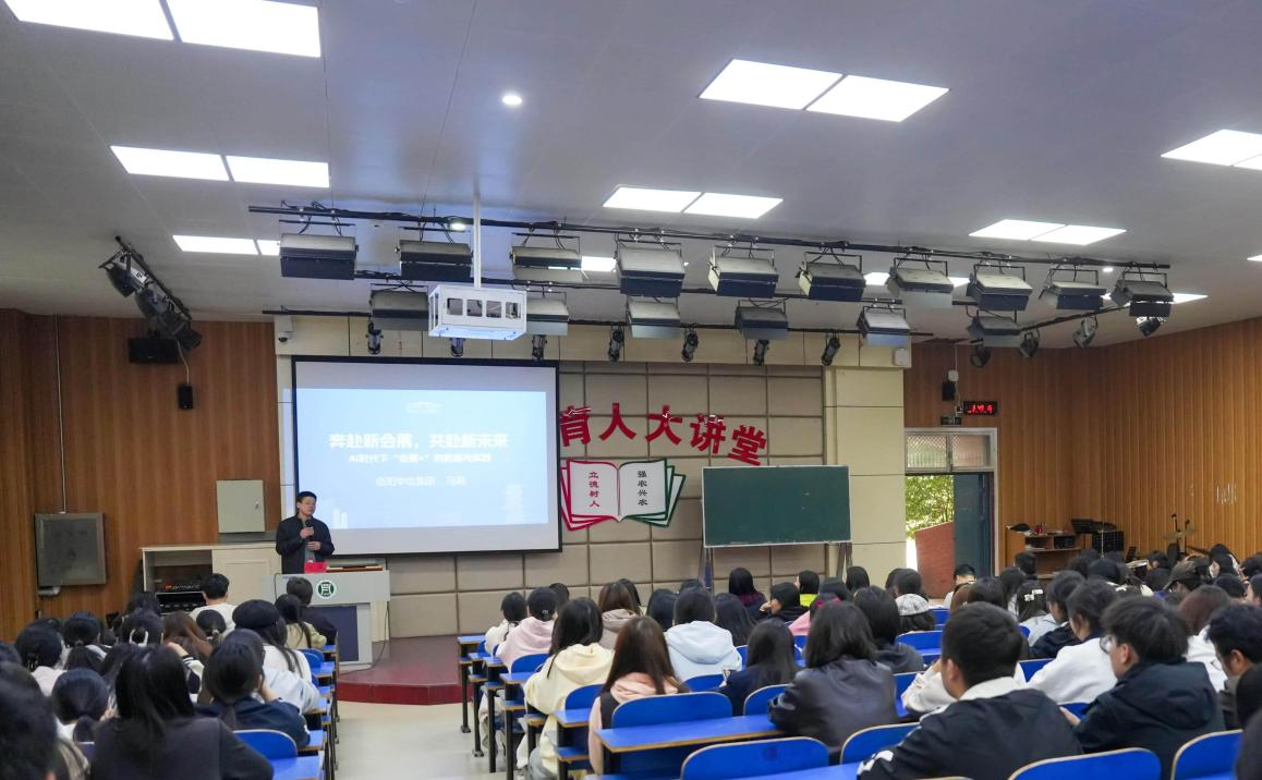 马莉围绕“新形势、新变革、新实践”三个维度,系统阐述了全球会展业在数字化、绿色可持续、国际化与融合化方面的深刻变革;剖析了AI技术作为核心驱动力,如何通过智能匹配与全流程重构深刻重塑会展业态,并强调其对复合型人才提出的新要求;同时结合信阳百花会展中心的创新实践,具体介绍了公司在构建“会展+”生态、打造品牌活动、深化文旅融合以及凝聚本土会展人才优势等方面取得的成果。此外,还融入自身多年行业阅历,生动讲述了展会筹备中的突发挑战与感人瞬间,以真实故事激发共鸣,与师生共同展望行业广阔前景,并鼓励同学们以创新思维审视未来、以无畏勇气迎接挑战,积极投身会展事业,开拓属于新时代的会展新领域与新未来。