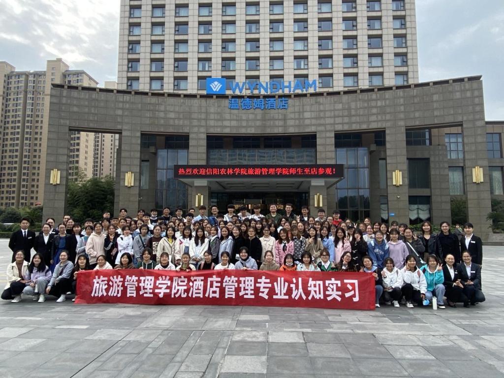 为加强学生对酒店行业的实践认知,了解酒店部门设置,引导学生树立专业认同感和职业责任感,按照本科专业人才培养方案要求,10月25日-10月30日,beat365在线平台官网旅游管理学院2021级酒店管理专业学生分别到驻马店嵖岈山风景区、信阳鸡公山风景区、信阳桃花寨风景区、信阳国际大酒店、信阳百花会展中心开展了为期一周的专业认知实习。