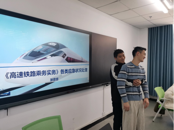 综合演练环节,学生分别对列车消防、旅客受伤、卧铺重售、餐车故障导致残料不足、旅客休克进行紧急抢救、列车行驶中突发传染疾病6个情景进行演练,各组通过剧情讨论、彩排,纷纷呈现出了非常精彩的演练效果。中英文语音播报、旅客纠纷处理技巧、客运记录和铁路电报的撰写、应急预案、应急处置方法等知识,在演练中都得到了非常好的运用。