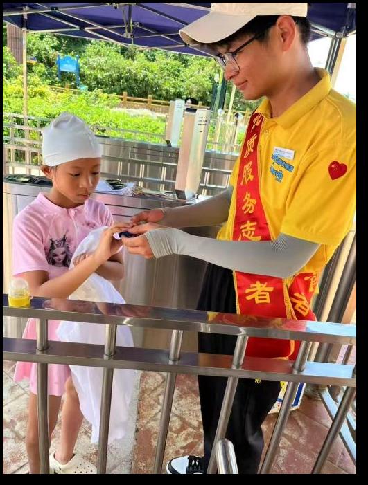 旅游管理23-1班学生,在港中旅(珠海)海泉湾有限公司乐园中心担任检票员,主要负责票务核验、游客入园引导、咨询解答与游览建议提供等工作,并根据园区运营需要,参与设备维护、研学拓展等跨部门支援任务。