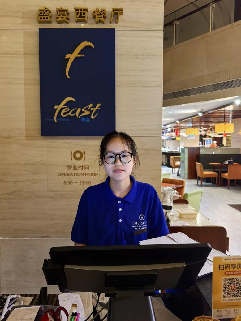 “这段西餐厅收银的实习让我明白,每一笔结账都不只是数字的交接,更是与客人真诚互动的机会。从起初面对客流高峰的紧张,到后来能沉稳应对、快速准确完成结算,我学会了在快节奏中保持细致。当客人因我的耐心解答而舒展眉头,或因我的主动帮助而展露笑容时,我真正体会到——服务虽在幕后,温暖却可直达人心。我也更懂得团队协作的意义,彼此的补位与支持让繁忙的餐厅运转得更加顺畅。这段经历不仅锻炼了我的业务能力,更让我坚定了在酒店行业持续耕耘、传递专业与温度的信念。”(撰稿/陈明珠王亚君摄影/实习单位工作人员)