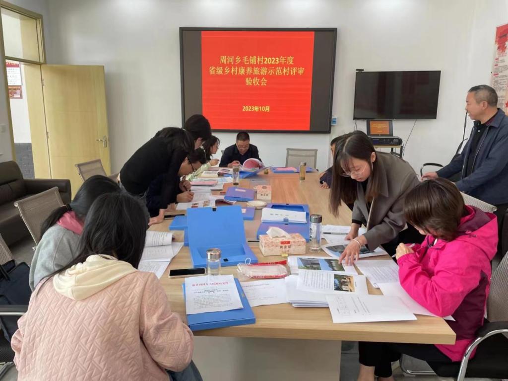 此次评定工作共考察信阳市8个县3个区共28个行政村,分两个工作组。按照信阳市文化广电和旅游局的安排,陈婷、王亮亮作为评定专家被分至两个工作组。10月10日上午工作组赴浉河区董家镇凌岗村观摩考察并商讨确定统一标准。下午,各工作组到各自分属的县区展开现场验收评定工作。