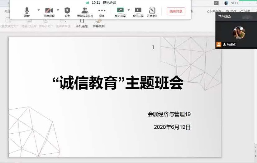期末考试临近,为了营造良好的考试氛围,2020年6月19日,旅游管理学院号召全体辅导员通过线上平台召开2020春夏学期诚信考试主题教育班会,以进一步严肃考风考纪,加强对学生们的诚信考试教育。