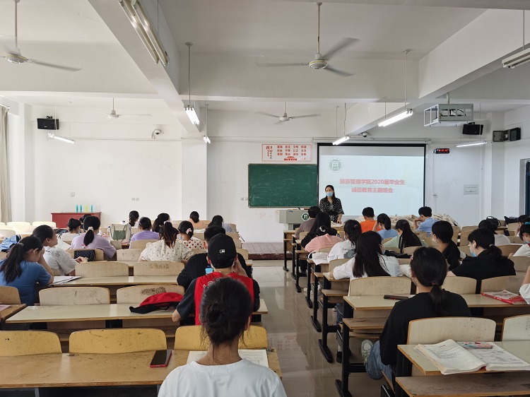 为确保专升本考试平稳顺利,进一步加强专升本统一考试诚信治理,严肃考试纪律,提高学生诚信考试意识,营造积极向上的良好氛围。7月7日,旅游管理学院在二教201开展了2020届专科毕业生“诚信考试,积极备考”的主题教育班会。会议由毕业班辅导员主持,院党总支副书记杜丽参加。
