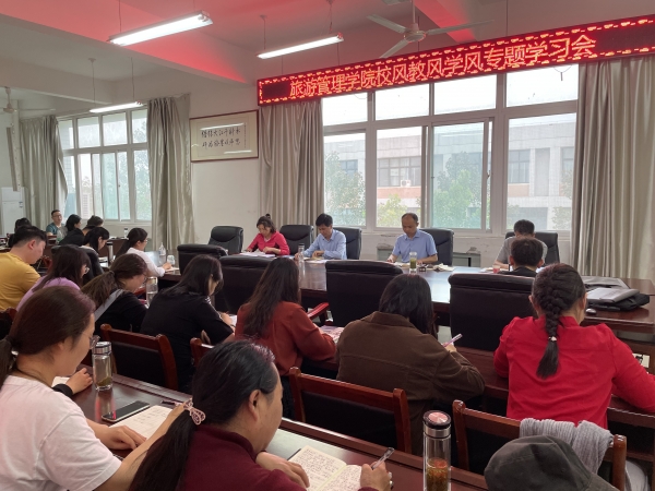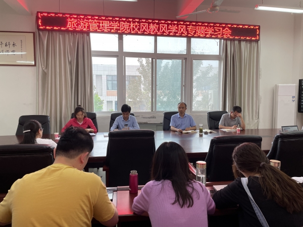 为进一步提升我院办学水平,提高教书育人质量,建设文明和谐校园。5月11日下午,旅游管理学院在1c502会议室召开校风教风学风专题学习会,全体教职工参加会议,会议由院党总支书记陈建国主持。