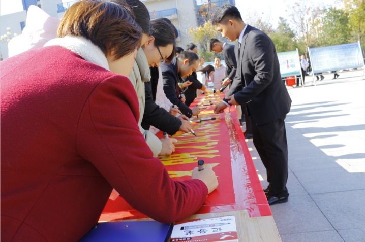 活动中,陈建国宣读了《大学生讲文明 重礼仪倡议书》,他指出美丽校园离不开文明形象,离不开礼仪规范,倡议同学们要从精神文明、课堂文明、举止文明、网络文明、宿舍文明、食堂文明、社交文明七个方面认真践行礼仪,不断提高文明素养,培育良好德行,真正做到文明润泽心灵,礼仪践行于身。学院2018级文明素养提升示范班邵自齐同学代表发言,他表示将不断学习与践行文明礼仪,规范文明行为,做到知礼、懂礼、行礼。简频捷在讲话中告诉同学们,讲文明、懂礼仪的学生须做到一要懂得尊敬老师,处处记得遵规守纪;二要杜绝不良习惯,自觉规范言行,培养高尚道德情操;三要具有理解、宽容、谦让、诚实的待人态度和庄重大方、热情友好、谈吐文明、讲究卫生的举止行为。礼秀社团的同学们为大家带来的“礼敬中华传统文化”---大学生礼仪秀和文明礼仪经典诗歌诵读,得到领导和全院师生的高度赞扬,随后,领导老师们在“文明之风吹暖书香校园,礼仪之雨滋润莘莘学子”条幅上签名,预祝此次系列活动取得圆满成功。