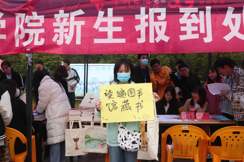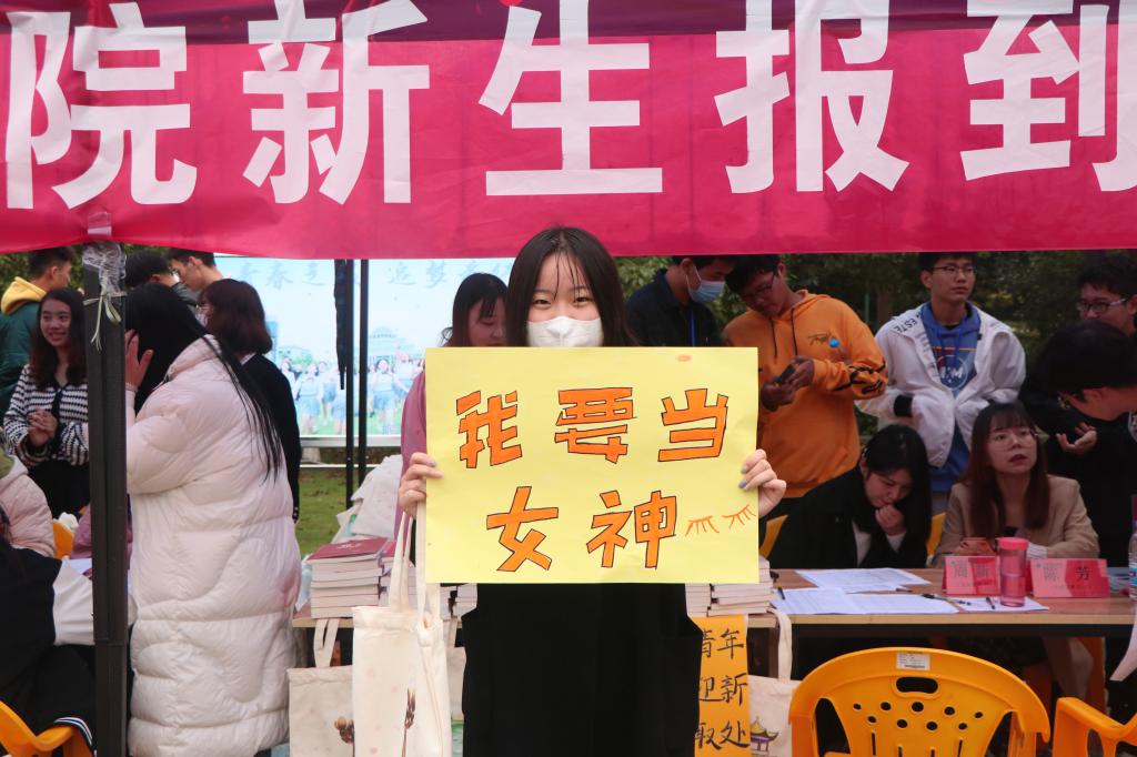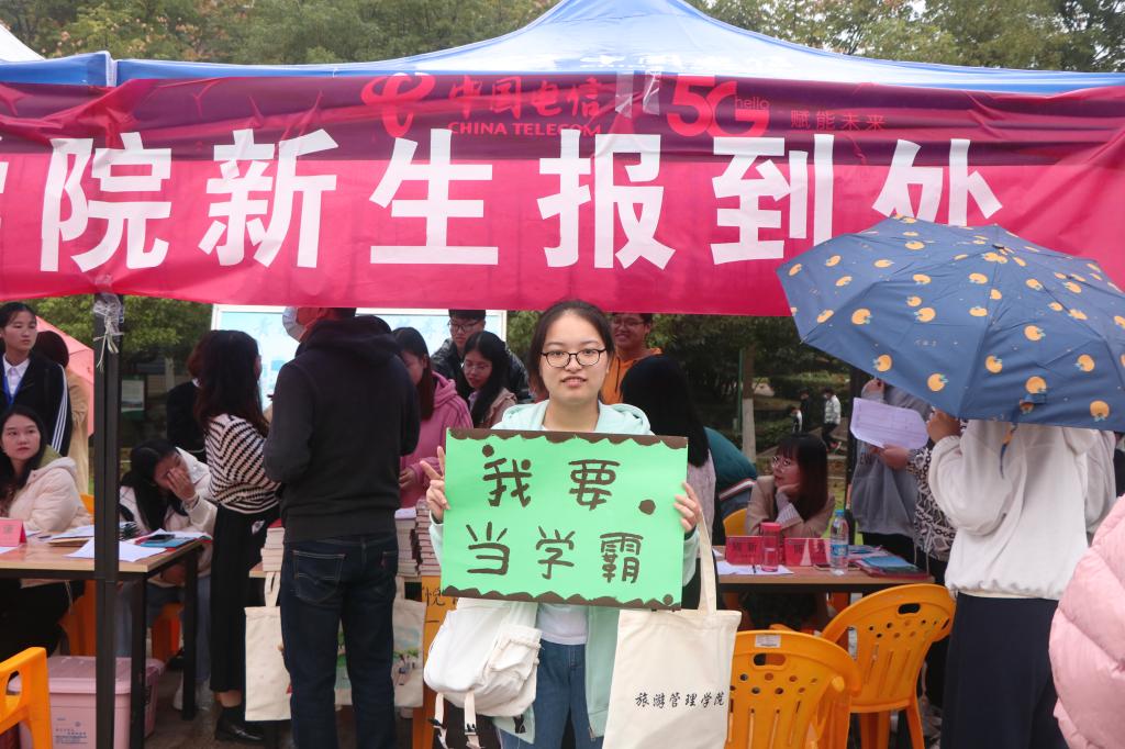 硕果十月,我们相聚在这里,青春在这里起航,梦想在这里飞翔。10月8日,旅游管理学院在迎新中开展了“我与我的‘Flag’合个影”活动。新生在迎新现场纷纷拿起写有“我要当学霸”“我要当男神”“我要当女神”“瘦成一道闪电”“做运动达人”“读遍图书馆藏书”……等文字内容的卡片合影,立下了自己进入大学后的首个“Flag”,以确定自己在大学期间要努力的方向和要实现的小目标。