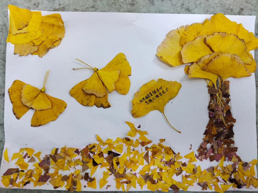 活动中,同学们充分开动头脑,让智慧与审美碰撞,让创意与灵感迸发,他们利用在校园里捡来的树叶、树枝、干枯的花朵或掉落的果实,通过剪刻﹑拼接﹑粘贴﹑点染等方式,创作出一幅幅奇思妙想的精美作品,用自己的双手和智慧留住了落叶生命轨迹中最后的绚烂。