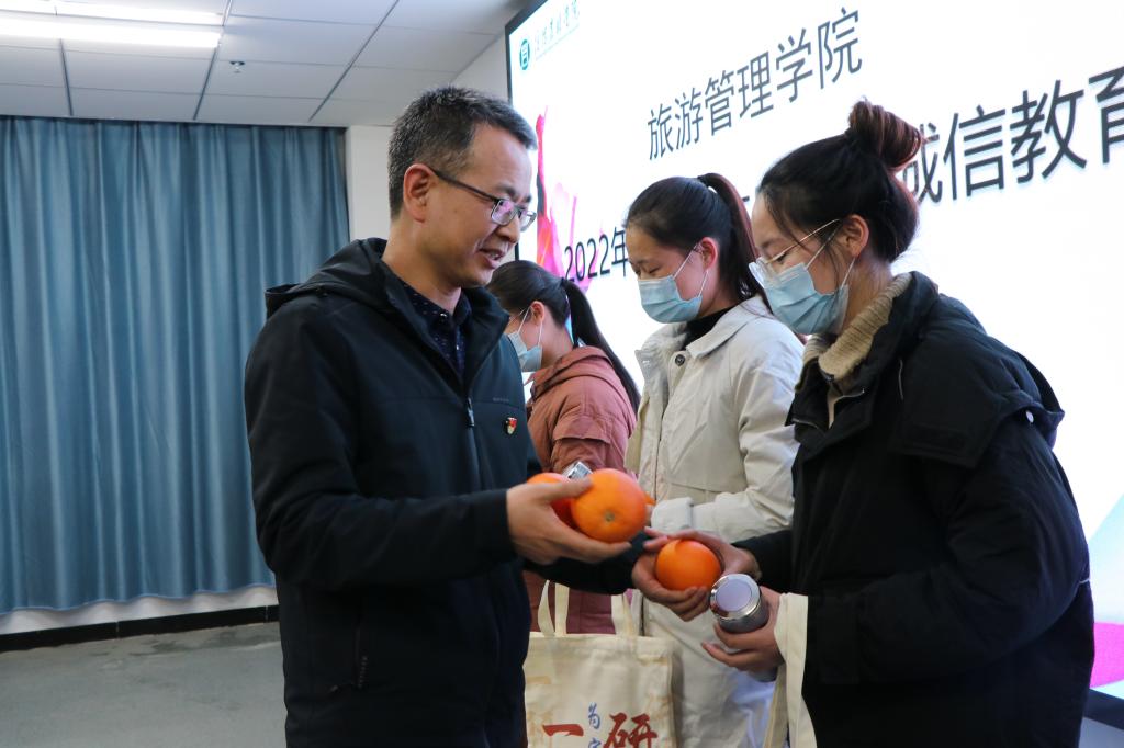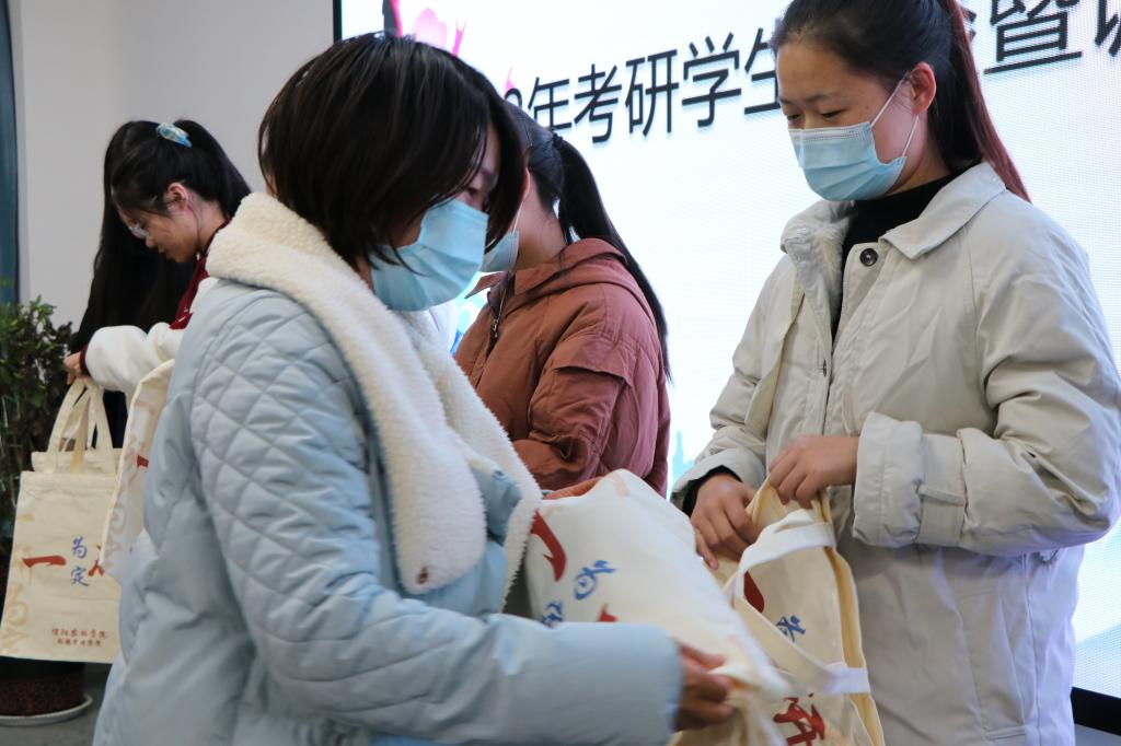 最后,学院贯彻爱心育人的教育理念,为每位考生送上寓意“心想事‘橙’、一“研”为定的“助考慰问礼包”。