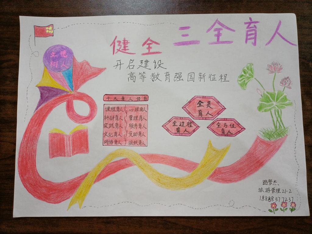 为落实立德树人根本任务,充分发挥文化在全员育人、全过程育人、全方位育人中的积极作用,坚持以文化人、以文育人,建设高质量的大学文化,形成“三全育人”工作的浓厚氛围,旅游管理学院于12月10日-20日举办了“三全育人”主题文化节艺术作品大赛。