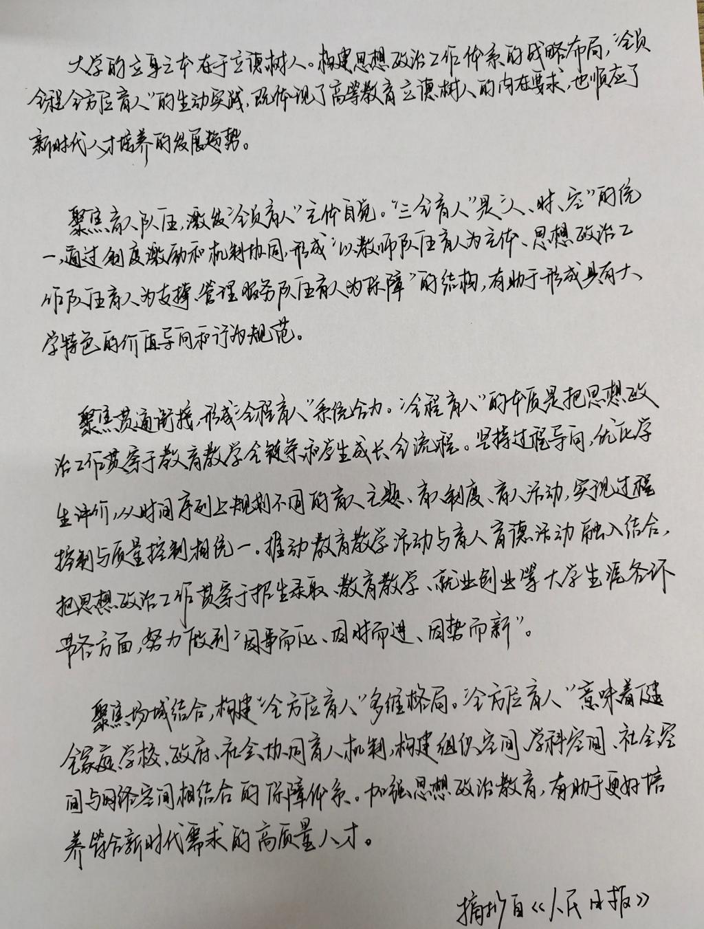 本次活动不仅促进了书香校园环境的营造,提高了师生文化素养,增强了大家的文化自信,同时也使“三全育人”理念更加深入人心,使我院师生在今后的工作、学习和生活中都能继承传统,躬身力行,以文润己,以文化人,不断推动“三全育人”工作向纵深发展。(撰稿人:秦双飞 审核人:杜丽)