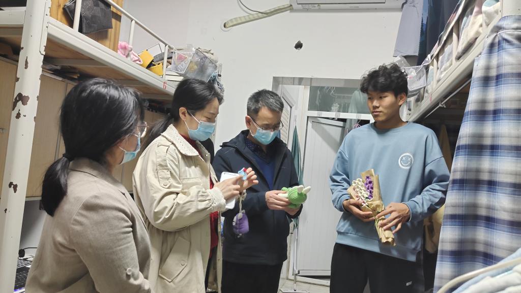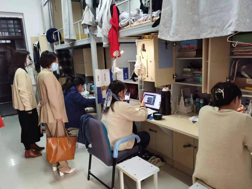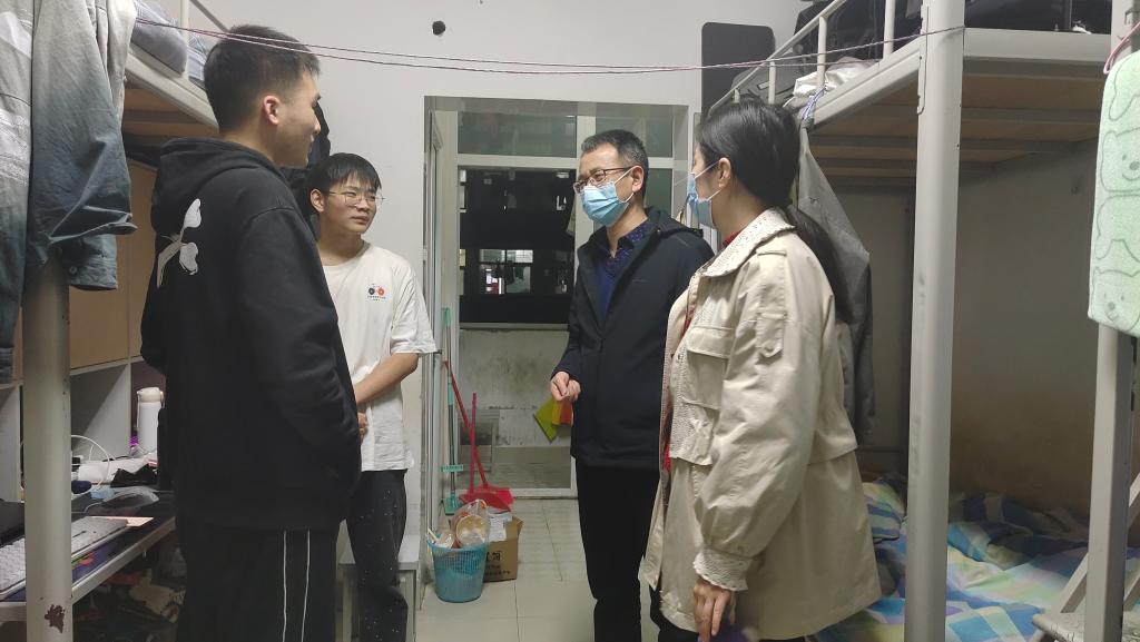 走访过程中老师们逐一查看了同学们在宿舍上网课的有关情况,详细咨询并了解了同学们在校园封控期间的思想和心理状况,询问同学们的生活学习诉求,倾听大家的心声,同时也向同学们强调了寝室卫生及用水用电安全。交谈中,院领导老师还用心地指导同学们特殊时期该如何养成自律的良好习惯,号召同学们在保质保量完成自己每天学业的同时,多走出寝室欣赏美丽的校园春景,舒缓压力,保持身心健康,同时要加强体育锻炼,培养兴趣爱好,将疫情期转化为“内功”修炼的良机,不负自我,不负青春。