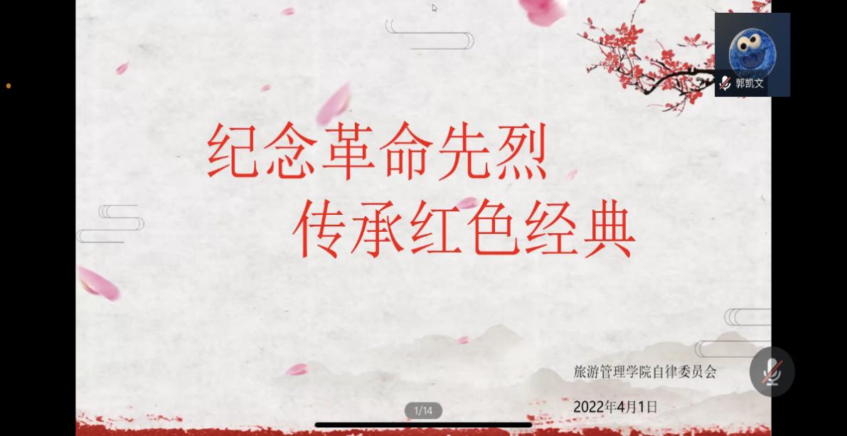 值此清明,为缅怀革命先烈,重温红色记忆,进一步引导学生铭记中国共产党光辉历程,弘扬爱国主义精神,4月1日晚,旅游管理院举办了线上“纪念革命先烈,传承红色经典”红色故事分享活动。活动由院团总支书记王芳主持。