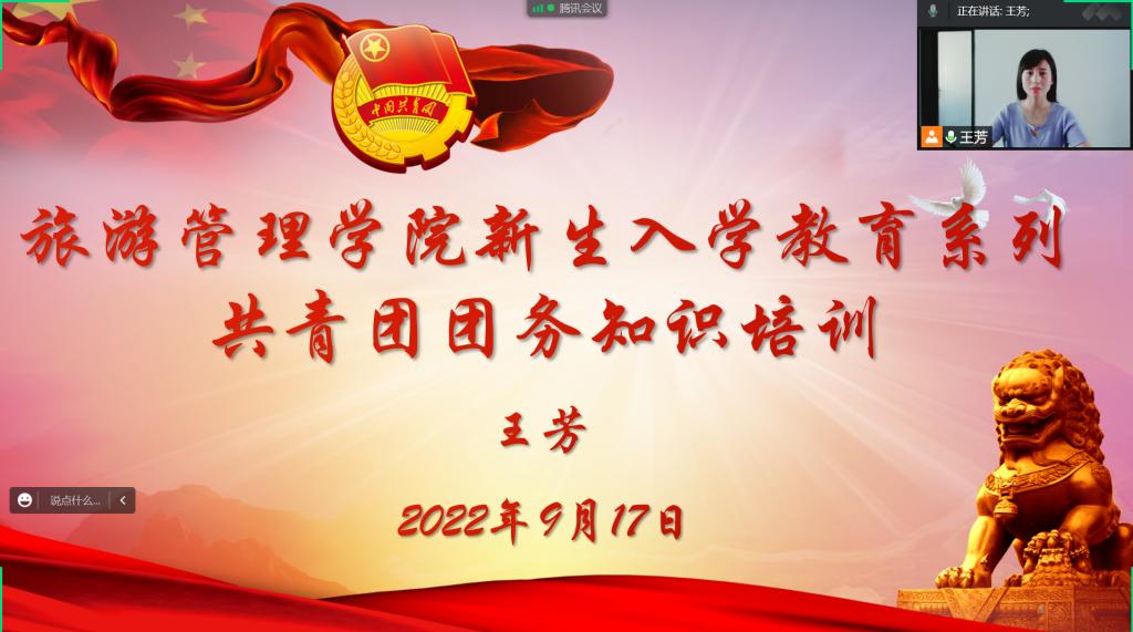 为加强2022级新生对共青团团务基础知识和基本理论的了解和掌握,提高新生团员的思想政治素养,增强团的凝聚力和战斗力,9月17日上午,旅游管理学院组织召开了共青团团务知识培训会,2022级新生辅导员及全体新生参加了会议,会议由团总支书记王芳主持。