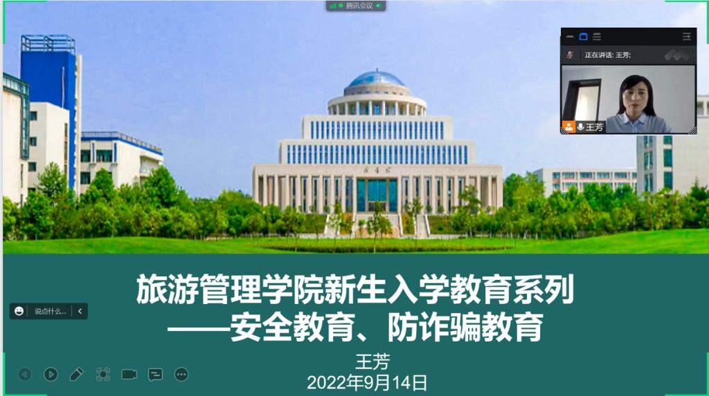 为增强2022级新生校园安全意识,树牢安全防线,同时做一名文明知礼的大学生,以蓬勃的面貌迎接新学期的学习生活,旅游管理学院于2022年9月14日下午,组织开展了题为“牢筑安全防线,争做文明学生”的入学教育培训,2022级全体新生参加了此次培训。