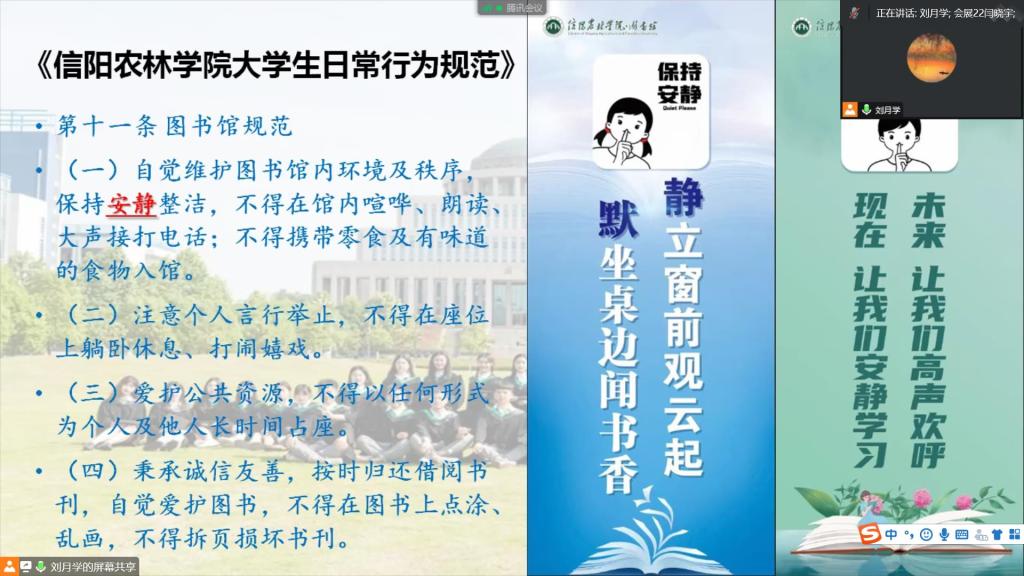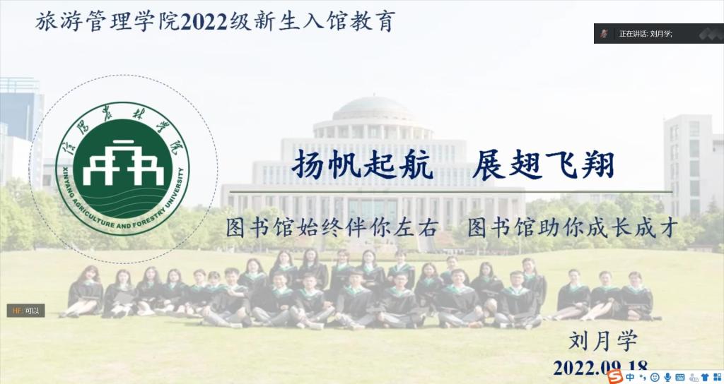 书香沁润校园,阅读点亮人生。9月18日上午,beat365在线平台官网图书馆技术部刘月学主任线上为旅游管理学院2022级新生开展了以“扬帆起航 展翅飞翔”为主题的图书馆入馆教育讲座。