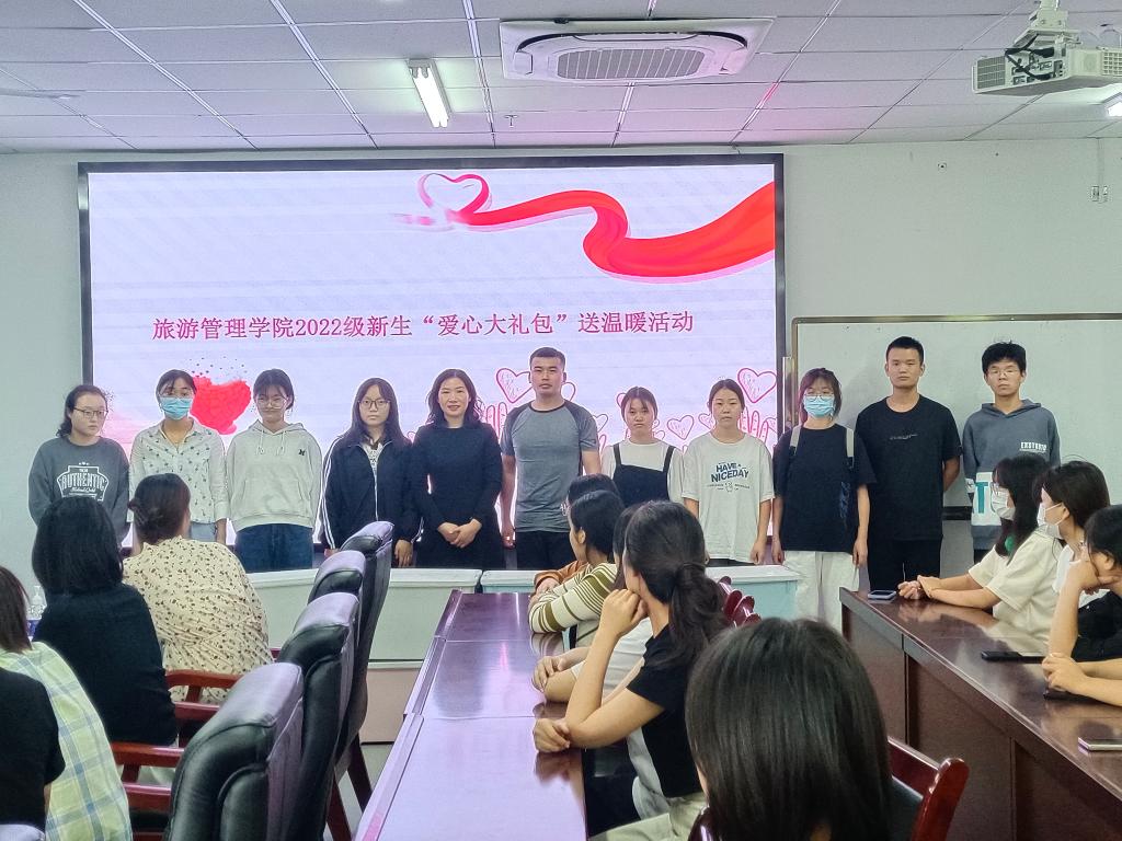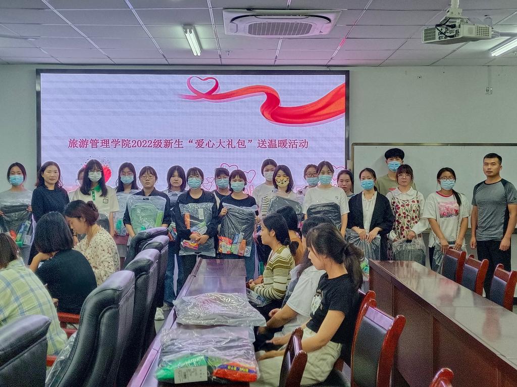 为更好地贯彻落实国家资助政策,进一步加强学生资助工作成效,体现学校对家庭经济困难学生的关怀。2022年9月21日中午,旅游管理学院开展了2022级新生“爱心大礼包”送温暖活动,旅游管理学院党总支副书记杜丽、专职辅导员张博、张春焕及39名贫困学生参加本次活动。
